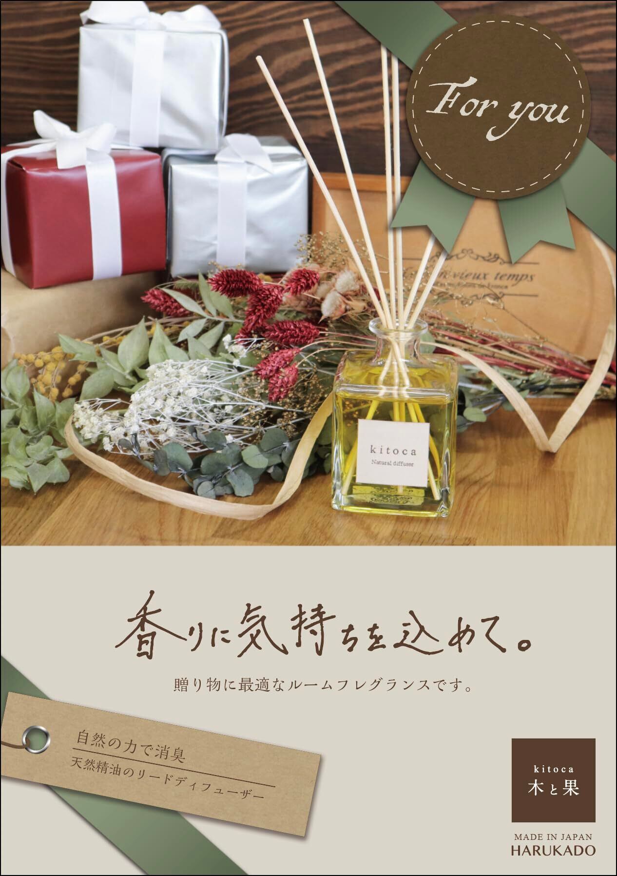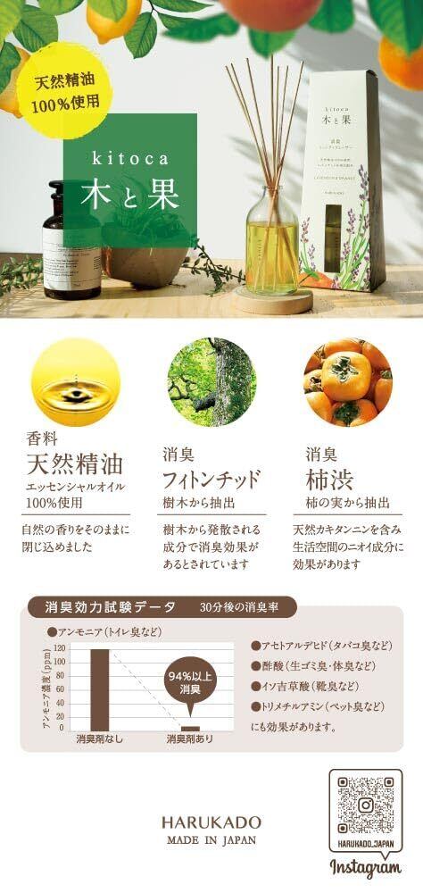 晴香堂(Harukado) kitoca 木と果 190 天然精油100%使用 リードディフューザー 190ml ゼラニウム&ベルガモット