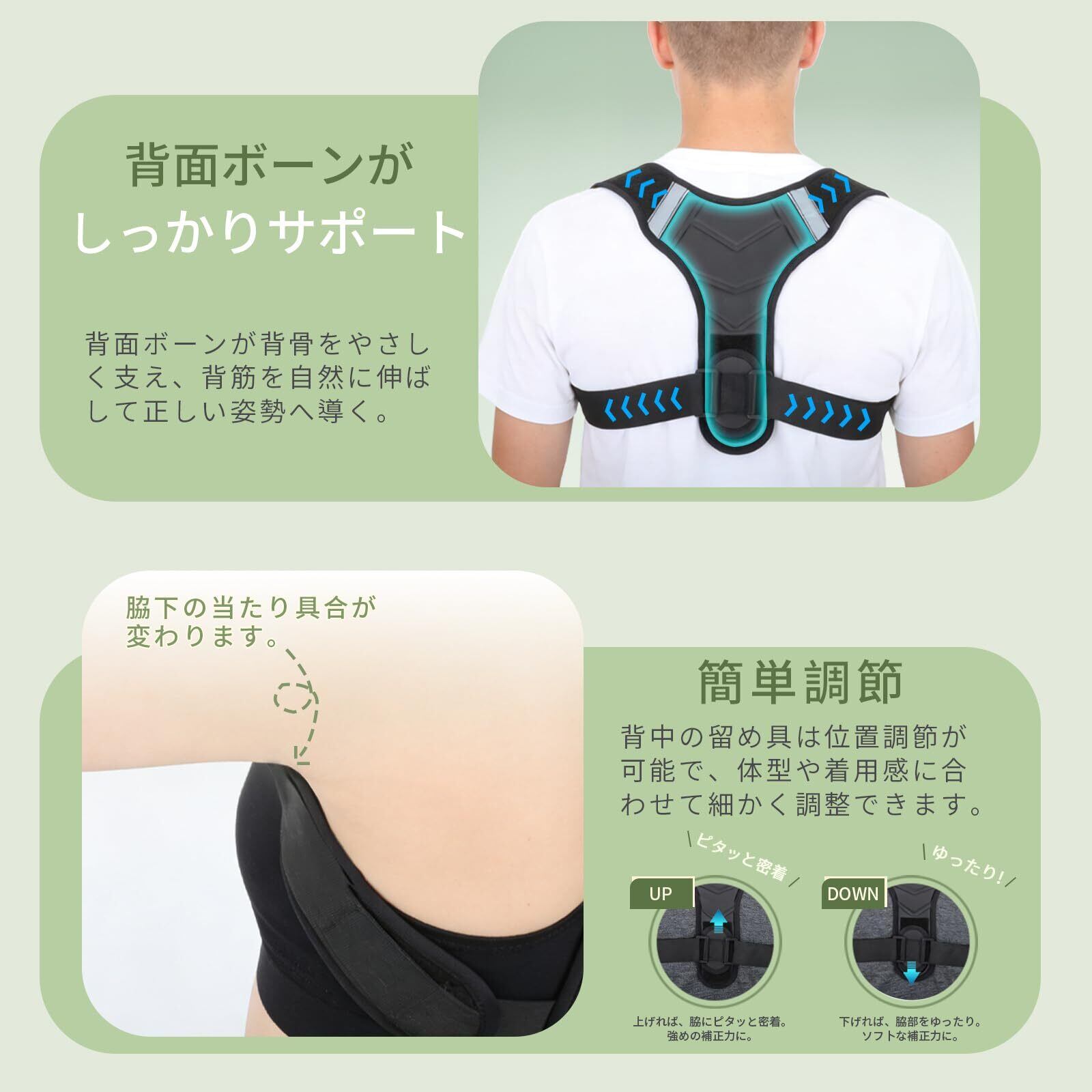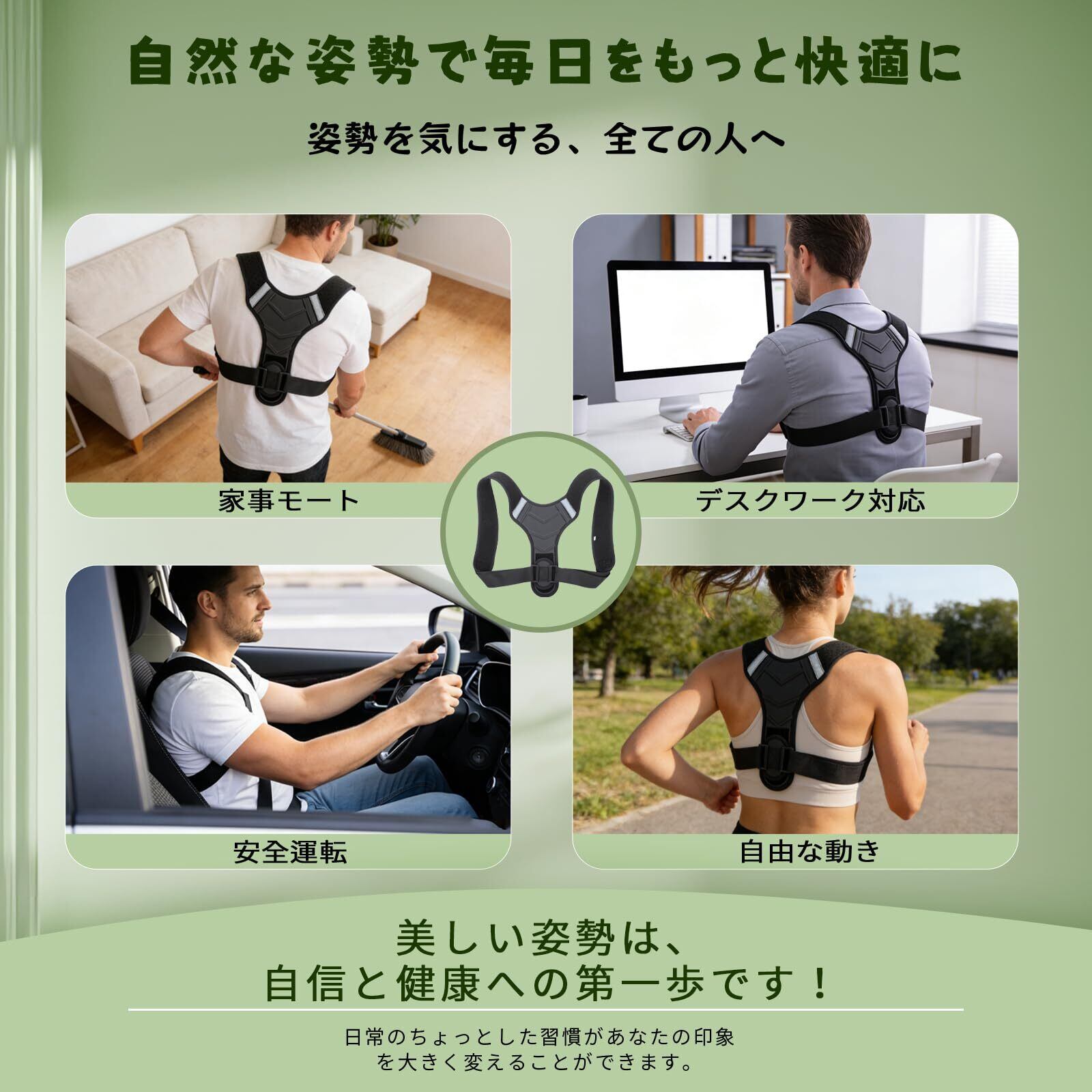 【背筋をスッと、美しい姿勢へ】長時間のデスクワークやスマートフォンの使用で、知らないうちに猫背になっていませんか。本姿勢サポートは、肩から背中にかけてやさしくフィットし、背筋を自然に伸ばします。無理に締め付けるのではなく、正しい姿勢を意識するきっかけを与える設計で、仕事中や勉強中など、日常生活の中で無理なく姿勢ケアを始められます。