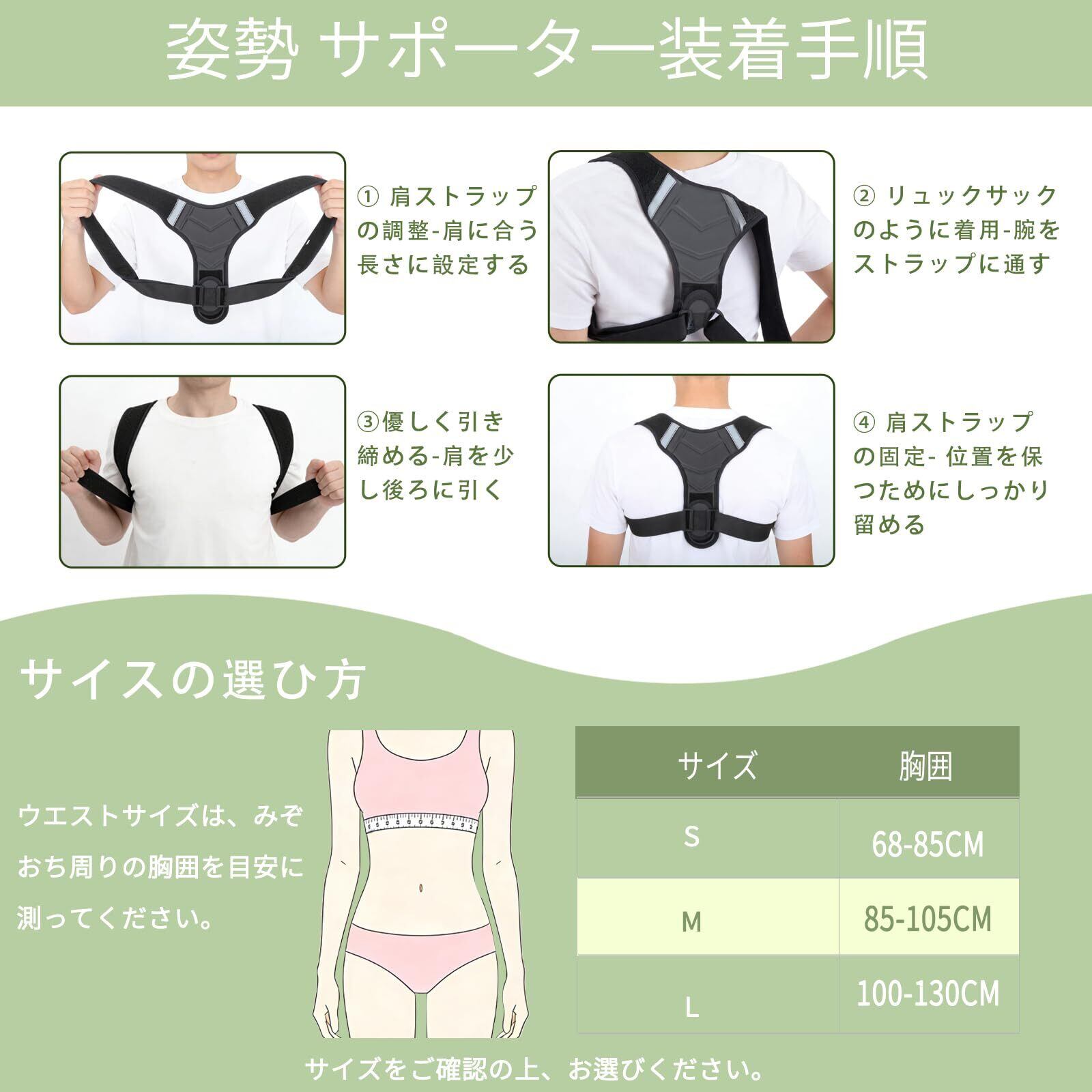 姿勢サポーター 背中サポーター 巻き肩 背筋ベルト 背中 猫背ベルト 目立たない 脱着簡単 調整可能 通気性優れ 軽量 デスクワーク 立ち仕事 作業用 男女兼用 猫背から美しい姿勢へ(M)