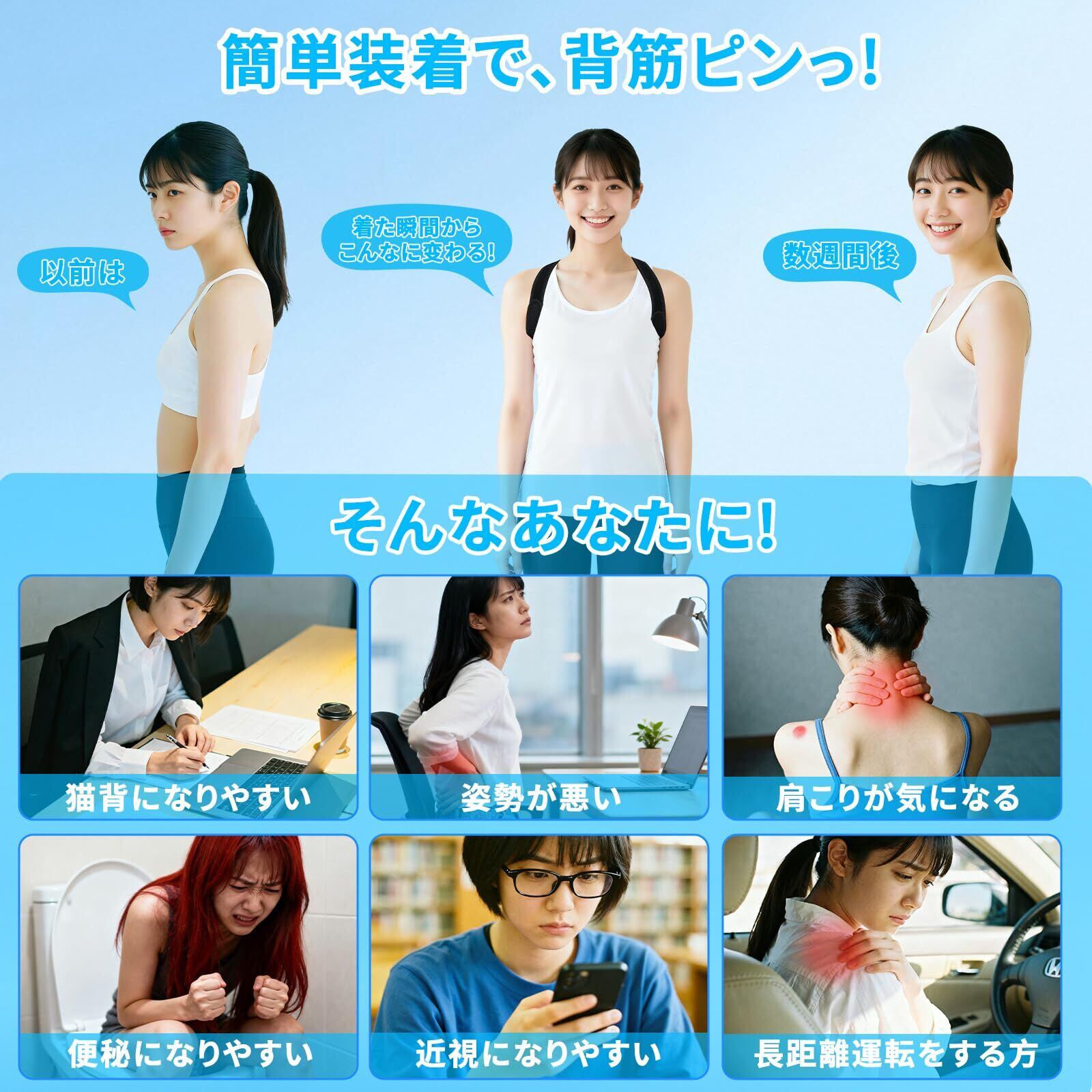 姿勢矯正ベルト 猫背矯正 背筋矯正ベルト 簡単着脱 自然な背中ストレッチ 3点固定 男女兼用 21日間で美姿勢 軽量通気素材 調整可能 (L)