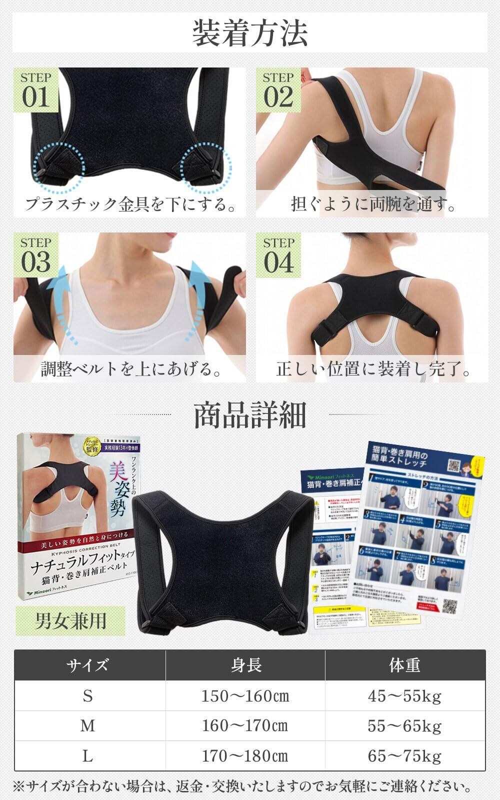 [整体師監修] 猫背 ベルト 姿勢サポーター 姿勢ベルト 巻き肩 背筋 背中 男女兼用 Lサイズ mof-nkb-l2