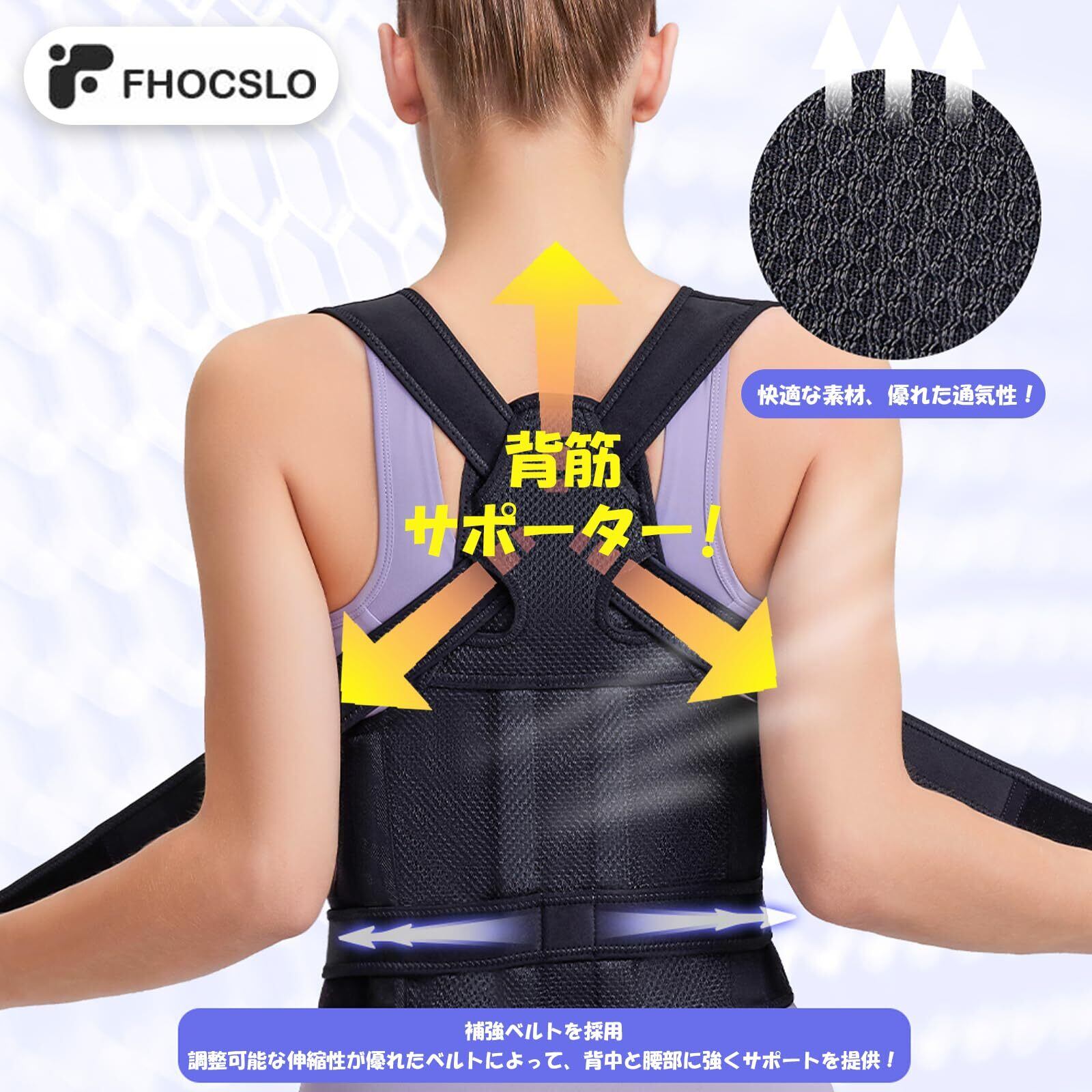 【姿勢サポーター・美しい姿勢へ】FHOCSLO猫背矯正ベルトは人間工学という科学的概念に従い、肩を自然に広げ、背筋を伸ばして正しい姿勢を維持できます。巻き肩補正ができ、猫背、腰痛を改善します。長時間の作業や学習、通勤通学中でも、肩こりや腰の疲れを軽減し、背骨の健康をサポートします。