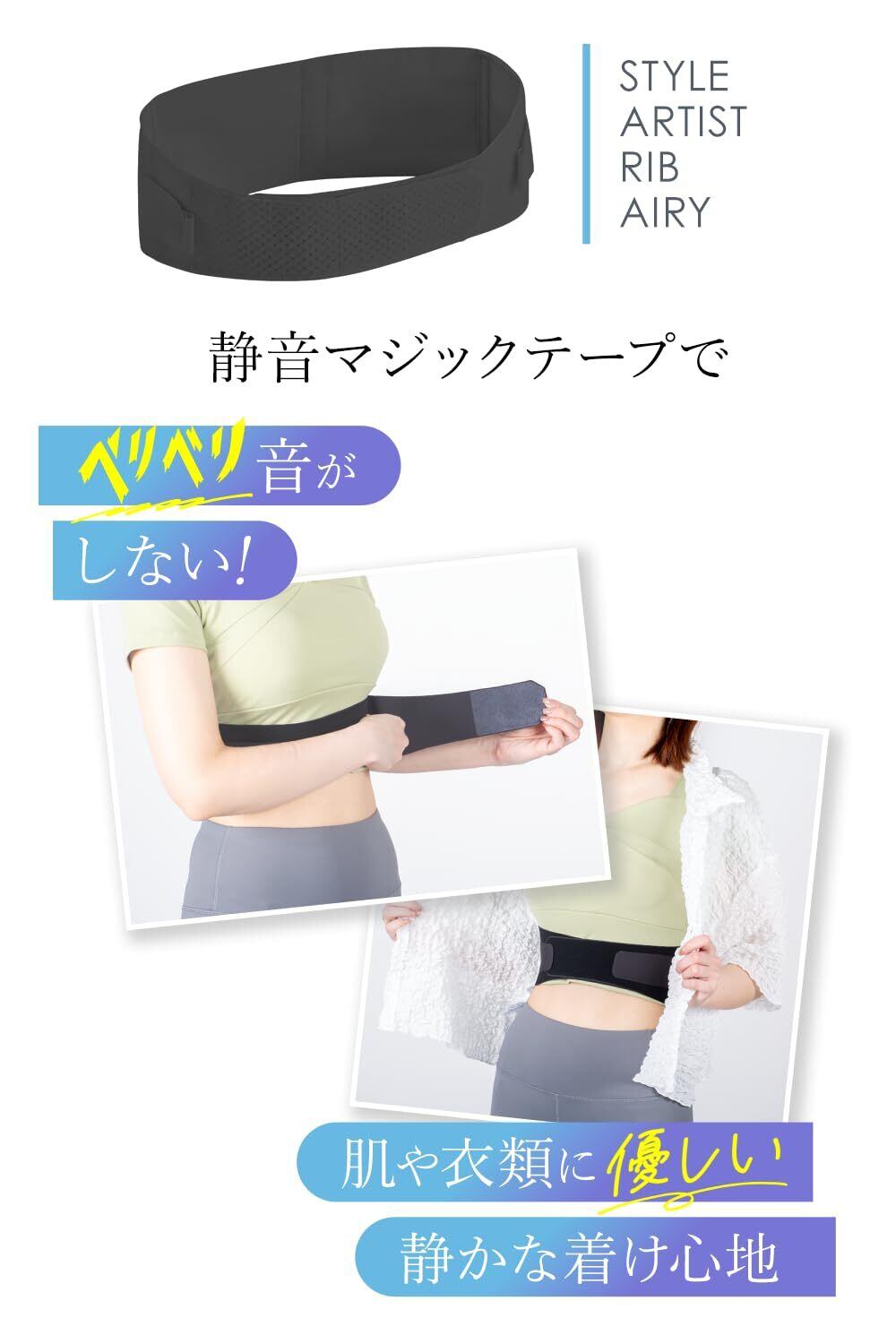 静音マジックテープ 肋骨 くびれ 姿勢 サポーター 薄型 軽量 洋服を傷めにくい 調節ベルト 男女兼用 鍼灸整体師監修 STYLE ARTIST RIB AIRY apprecia (LL-3L) | 毎日発送✿はなまる