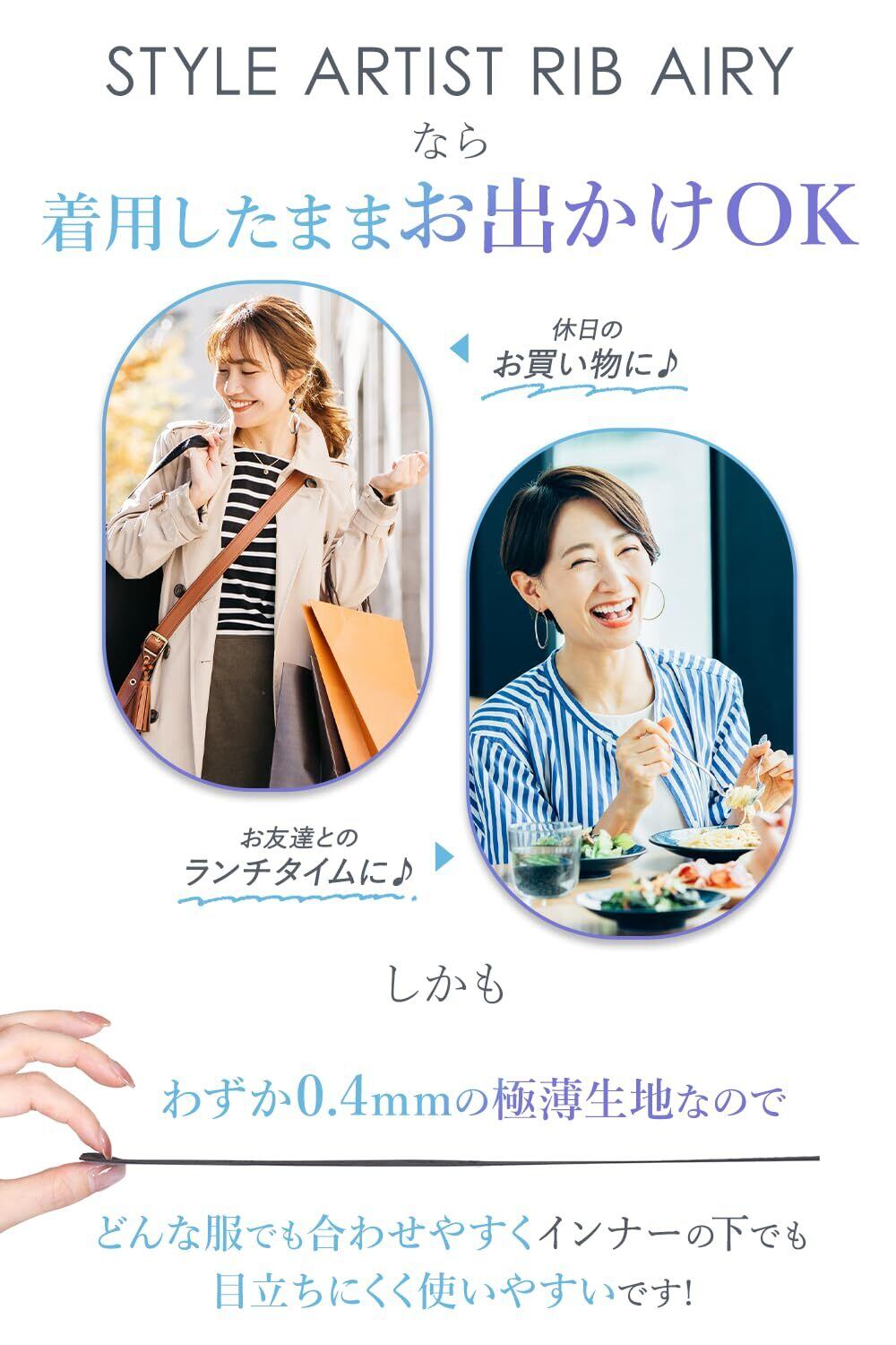 【極薄・軽量エアリー構造】 薄型で軽く、服の下でも目立ちにくいスマート設計。