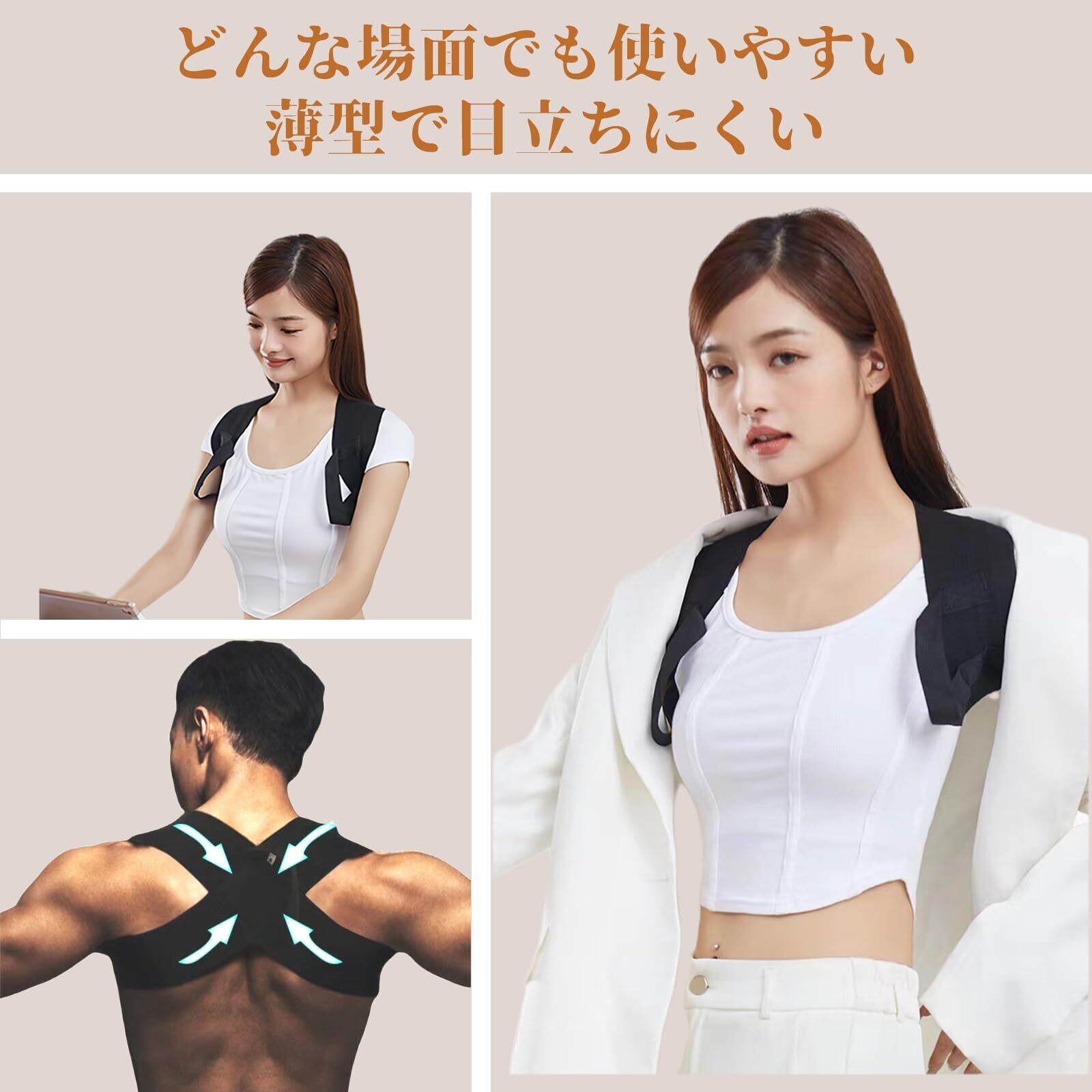 【多様なシーンで活躍】 薄型で衣服の下に装着しても目立ちにくく、オフィス、勉強、運転、家事、軽いスポーツなど幅広い場面で使用可能。毎日の生活に取り入れることで、美しい姿勢を無理なくサポートします。