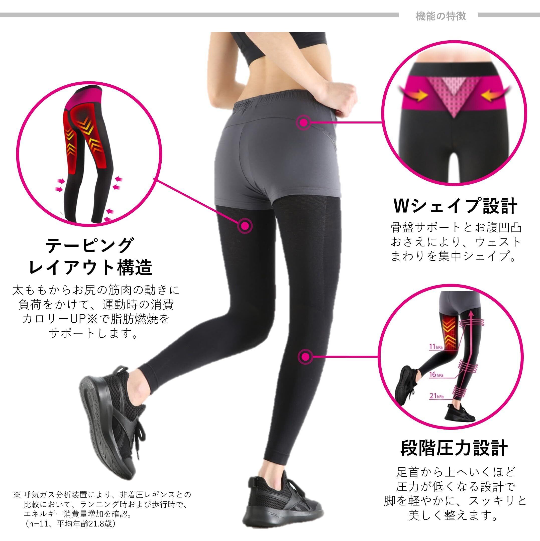 スリムウォーク 着圧レギンス ビューアクティ 燃焼 シェイプ レギンス ブラック M-L 着圧 スポーツ ビューアクティー