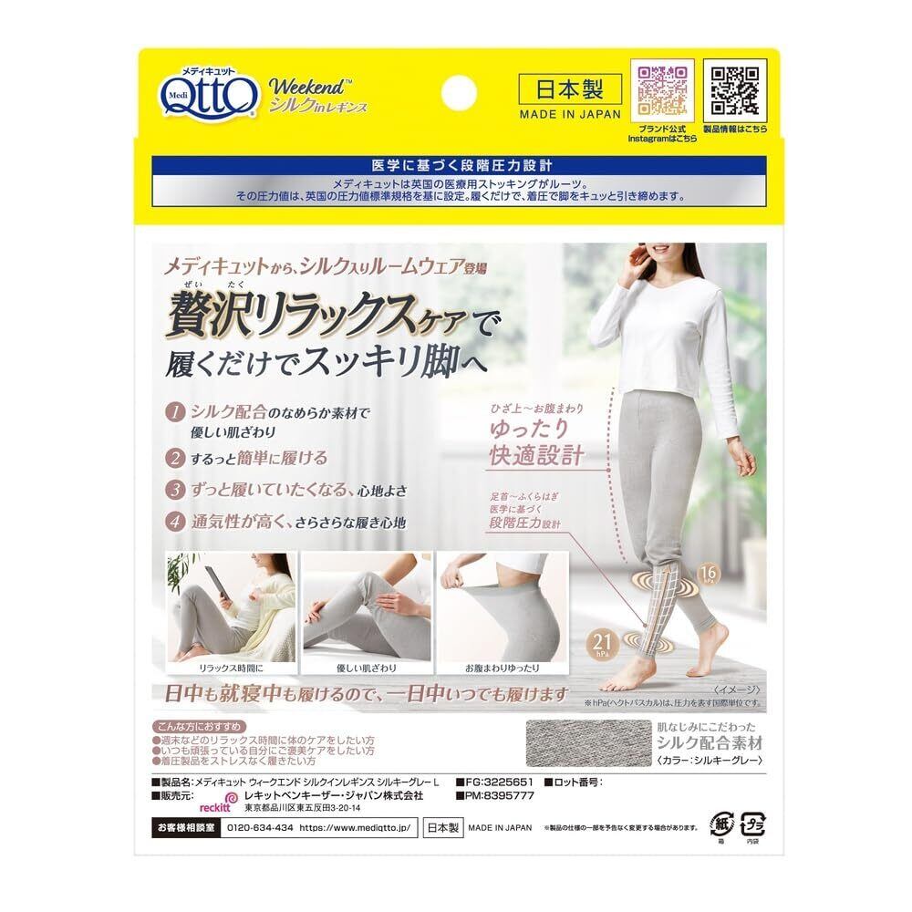 メディキュット 着圧ソックス ウィークエンドシルクインレギンス シルキーグレー L