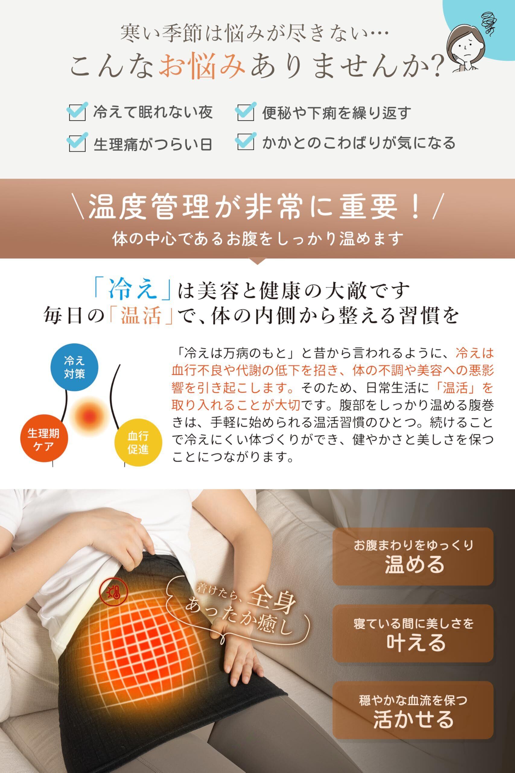 【お腹から全身ぽかぽか・毎日の温活習慣に】お腹をしっかり包み込み、じんわりと全身にぬくもりを届けます。冷えや寒さに敏感な方、そして冷房の効いた室内で過ごす方にもおすすめです。毎日の温活習慣に取り入れることで、心も体もリラックスした毎日へと導きます