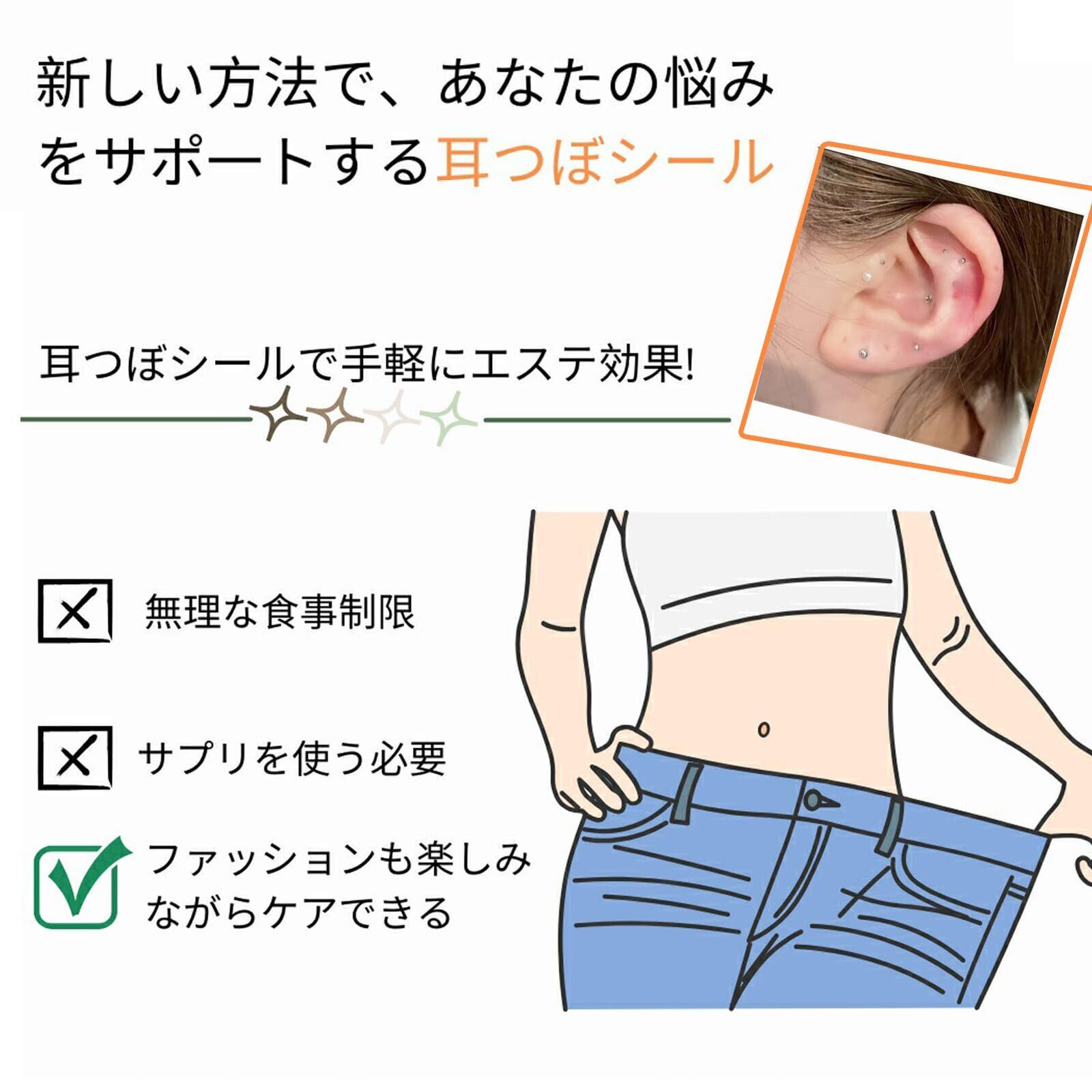 1.【耳つぼジュエリー 】耳つぼシールを優しく刺激し、針を使わず、寝たり外出したりしても長時間装着しても違和感がありません。