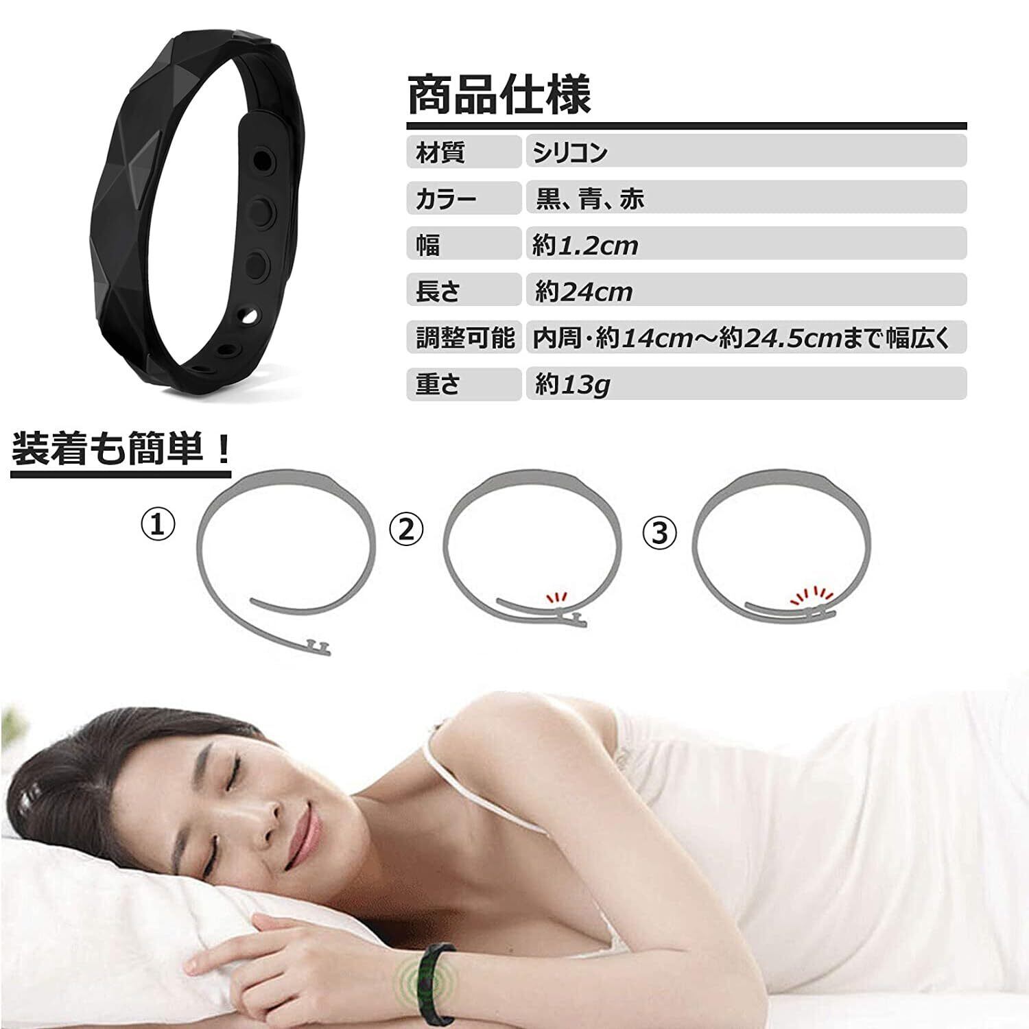 【仕様】:サイズ:長さ24cm、広さ1.3cm、厚さ:4mm、重さ:約13g、カラー:黒/青/赤、男女兼用、6穴デザインでサイズ調整可能、15cm〜23cmの手首に適応。