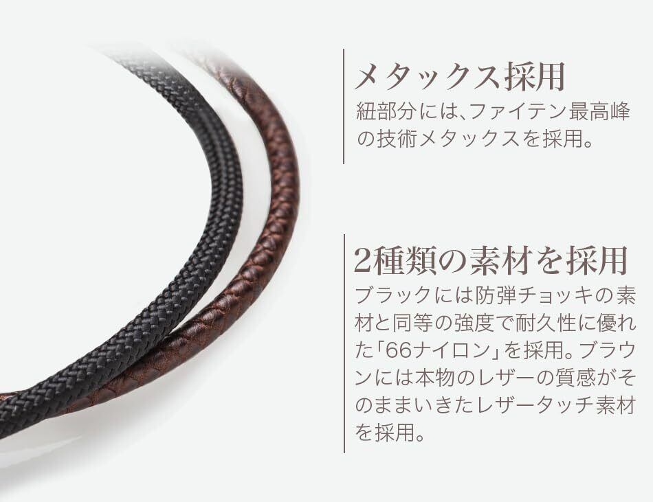 素材:紐部(生地)/ナイロン 紐部(中芯)/エラストマー 留め具/純チタン、ステンレス、ポリアセタール