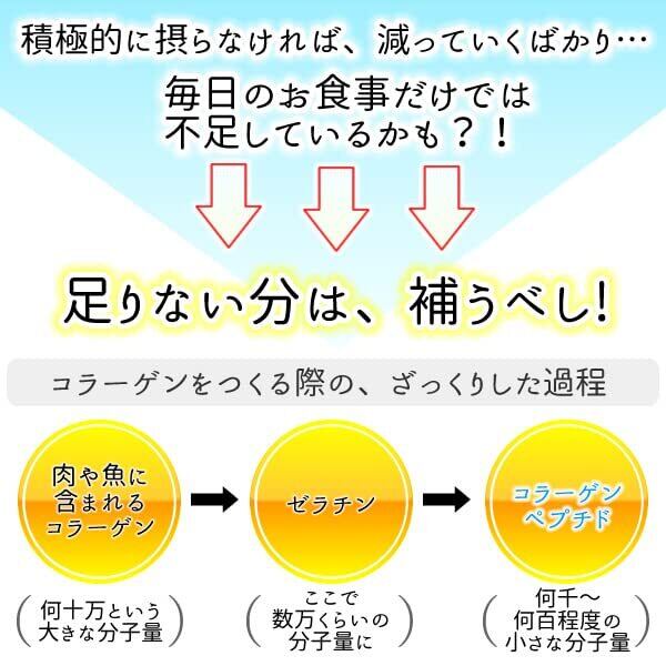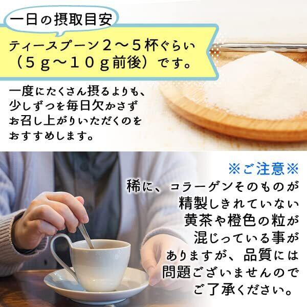 ※稀に、コラーゲンそのものが精製しきれていない黄茶や橙色の粒が混じっている事がありますが、品質には問題ございませんのでご了承ください。