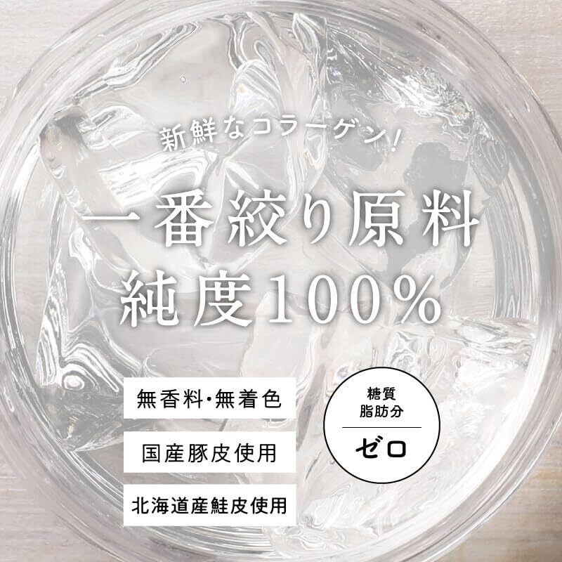 こなゆきマリンコラーゲンは、国産の鮭皮を使用した、高級コラーゲンを使用しています。動物性アレルギーや宗教上で動物性がNGな方にも安心してお召し上がりいただけます。