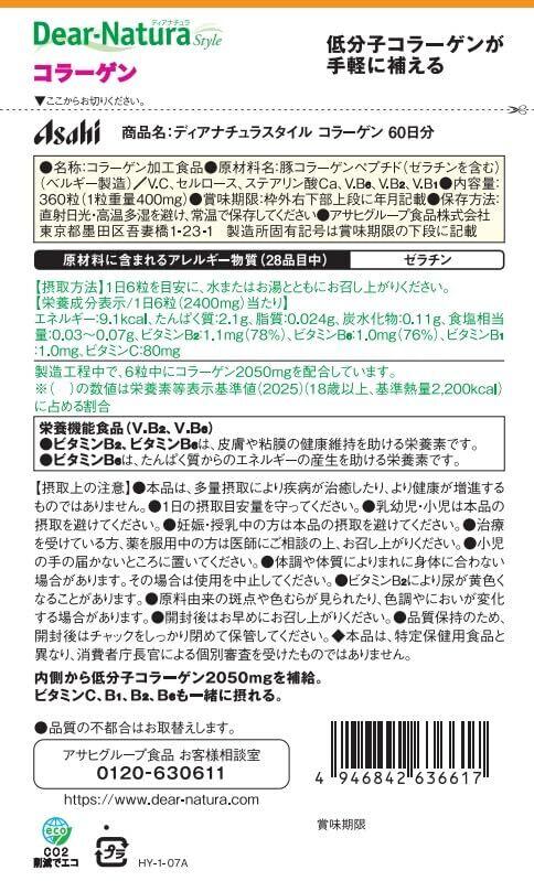 ディアナチュラスタイル コラーゲン 360粒 (60日分) アサヒ サプリ Dear-Natura 国内工場で生産 パウチ