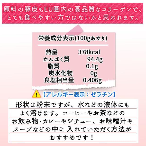 原材料名 コラーゲンペプチド(ゼラチンを含む、ベルギー生産) 原料:豚皮(EU圏域)