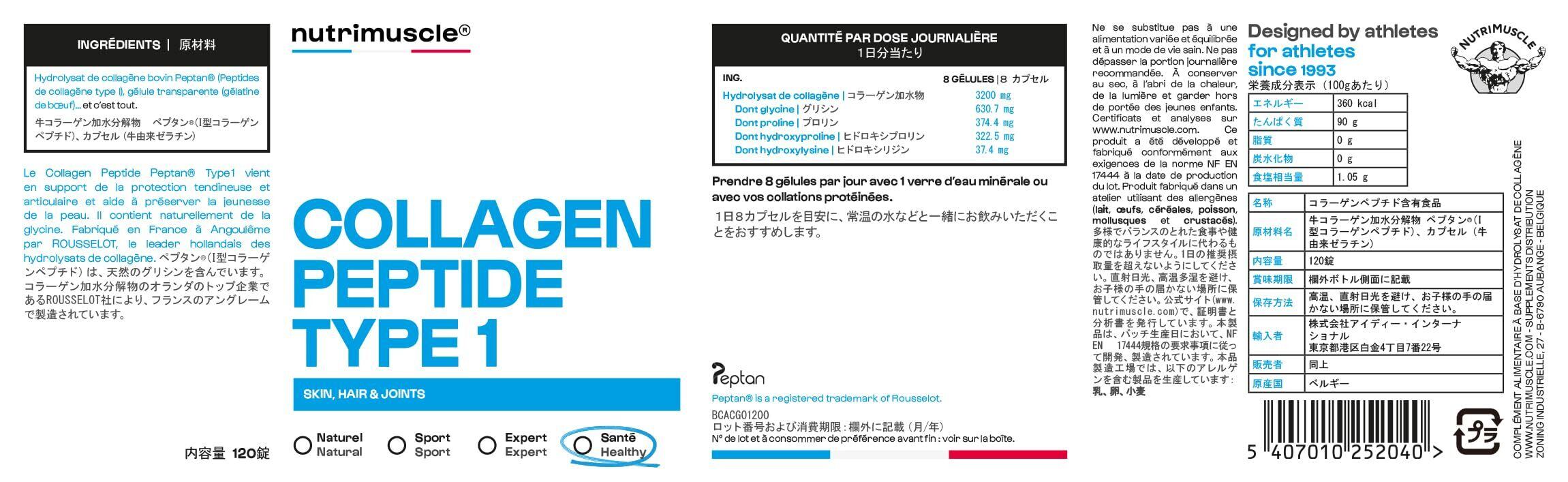 ニュートリミュスクル コラーゲン カプセル I型 コラーゲンペプチド 120カプセル(約15日分) 加水分解 Nutrimuscle collagen capsules