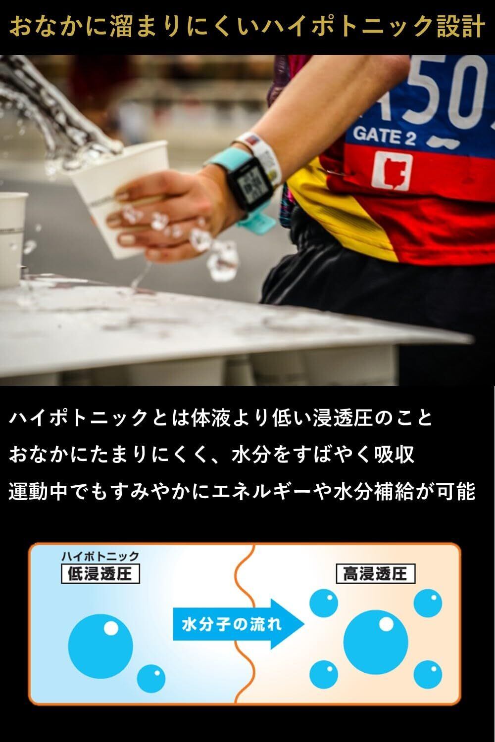 体液より低い浸透圧(ハイポトニック)にしています。熱中症対策飲料です。