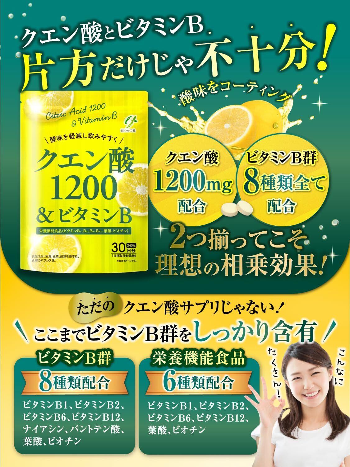 健やかの杜 クエン酸 ビタミンB サプリ 栄養機能食品 240粒30日分 (1袋)