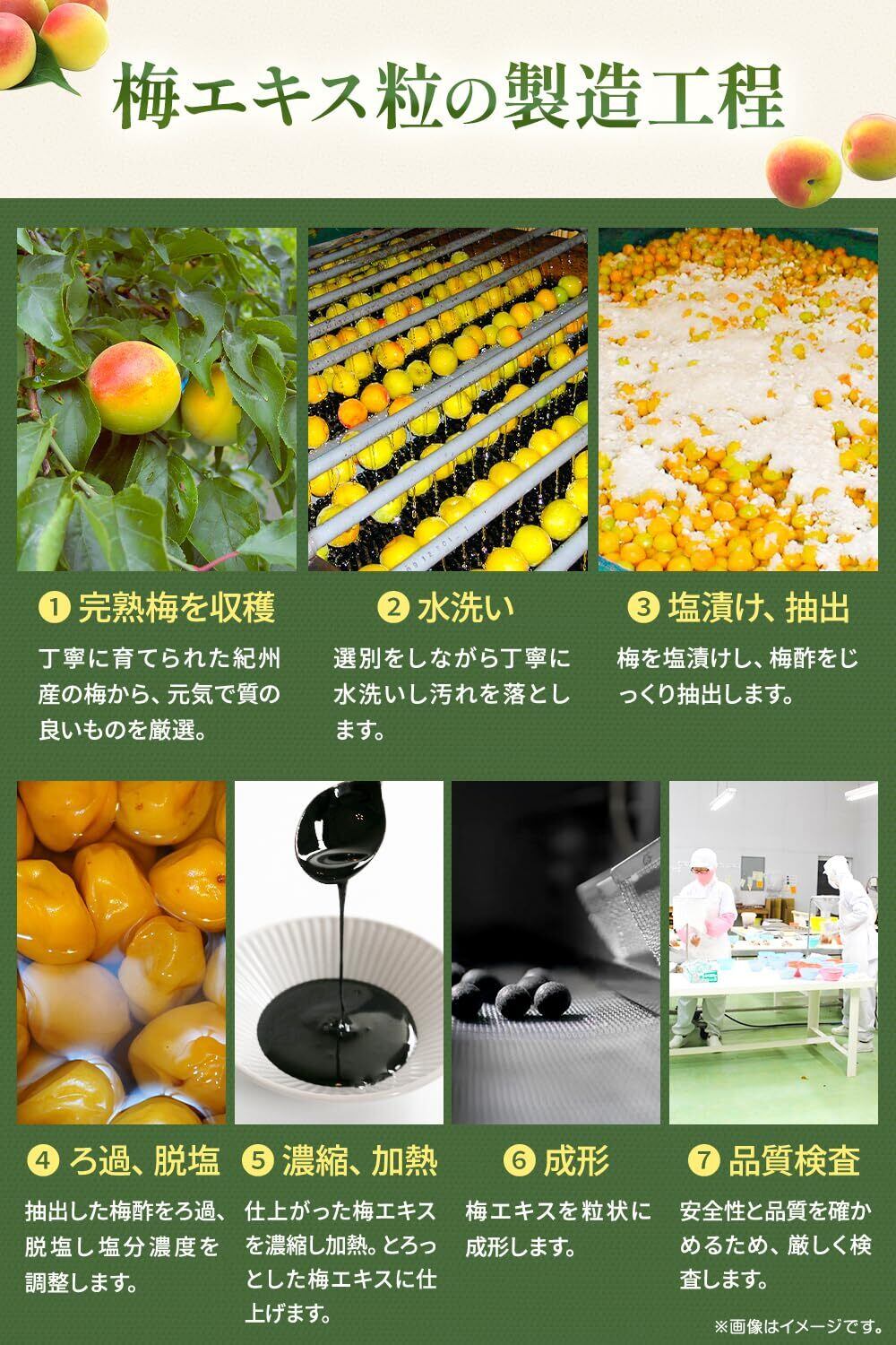 【こだわりの梅エキス粒製法】 完熟梅由来の酸度・糖度が高い梅酢を原料に製造し、食品素材のみで仕上げました。