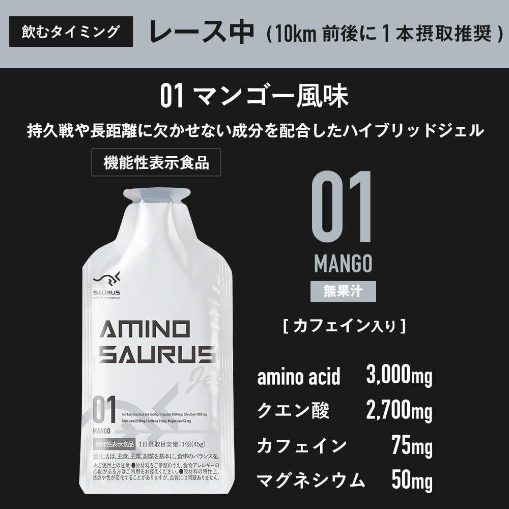 AMINO SAURUS GEL(アミノサウルス ジェル) アルギニン2000mg シトルリン1000mg クエン酸2000mg マグネシウム50mg カフェイン75mg レモン味 マンゴー味 2種各6合計12個入り 国産