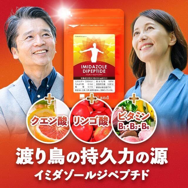【元気をサポートするサプリ】 毎日頑張りすぎているあなたへ。 イミダゾールジペプチド(アミノ酸結合)に、クエン酸、リンゴ酸、ビタミンB群(B1、B2、B6)をプラス。 忙しい日々を元気に乗り切るためのサポートサプリメントです。