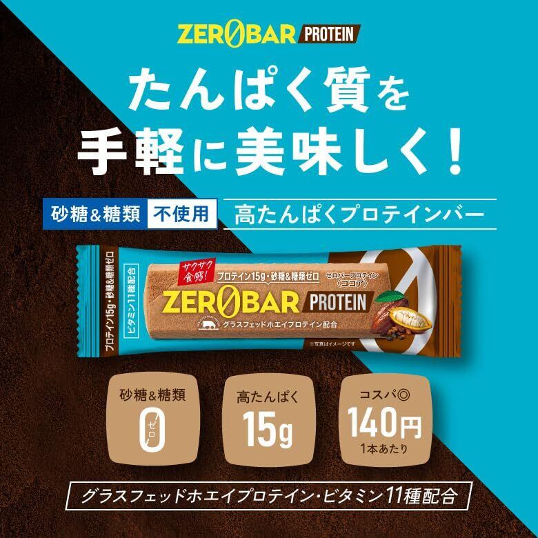 ZEROBAR プロテインバー グラスフェッドホエイプロテイン ソイプロテインバー 人口甘味料 無添加砂糖不使用 国内製造 (20本, ココア)