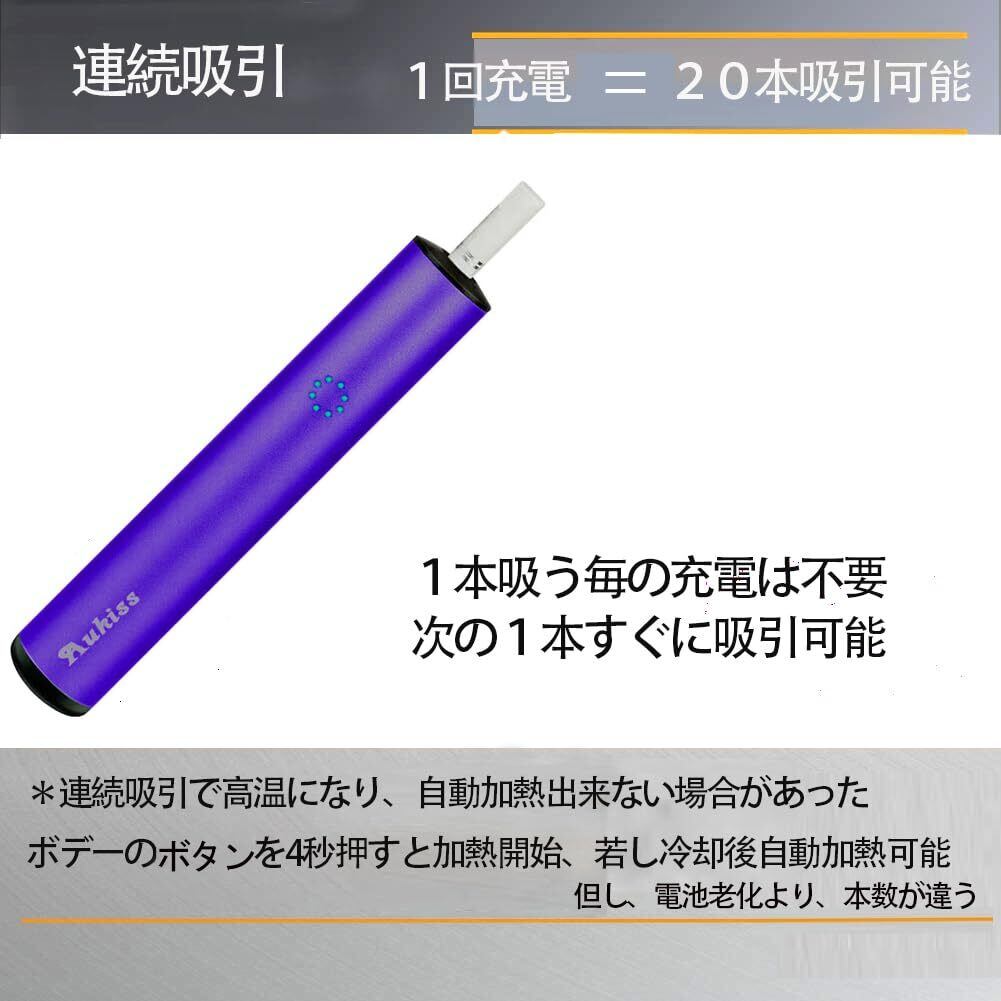 加熱式電子タバコ 交換機 加熱プレード無し連続20本使用可能 バイブレーション機能付き 三ヶ月あり ※注意※このデバイスには、インテリジェント操作モードとボタン操作モードの 2 つの操作モードがあります。 スマートオペレーションが挿入されたスティックを検出できず、デバイスが反応しない場合は、デバイスの下部にあるボタンを使用して、通常の使用を完了することができます。操作方法:スティックを挿入した後、点灯しない場合は、ON/OFFボタンを4秒間長押しして本体を起動させます。起動できない場合は、充電をお願いします。