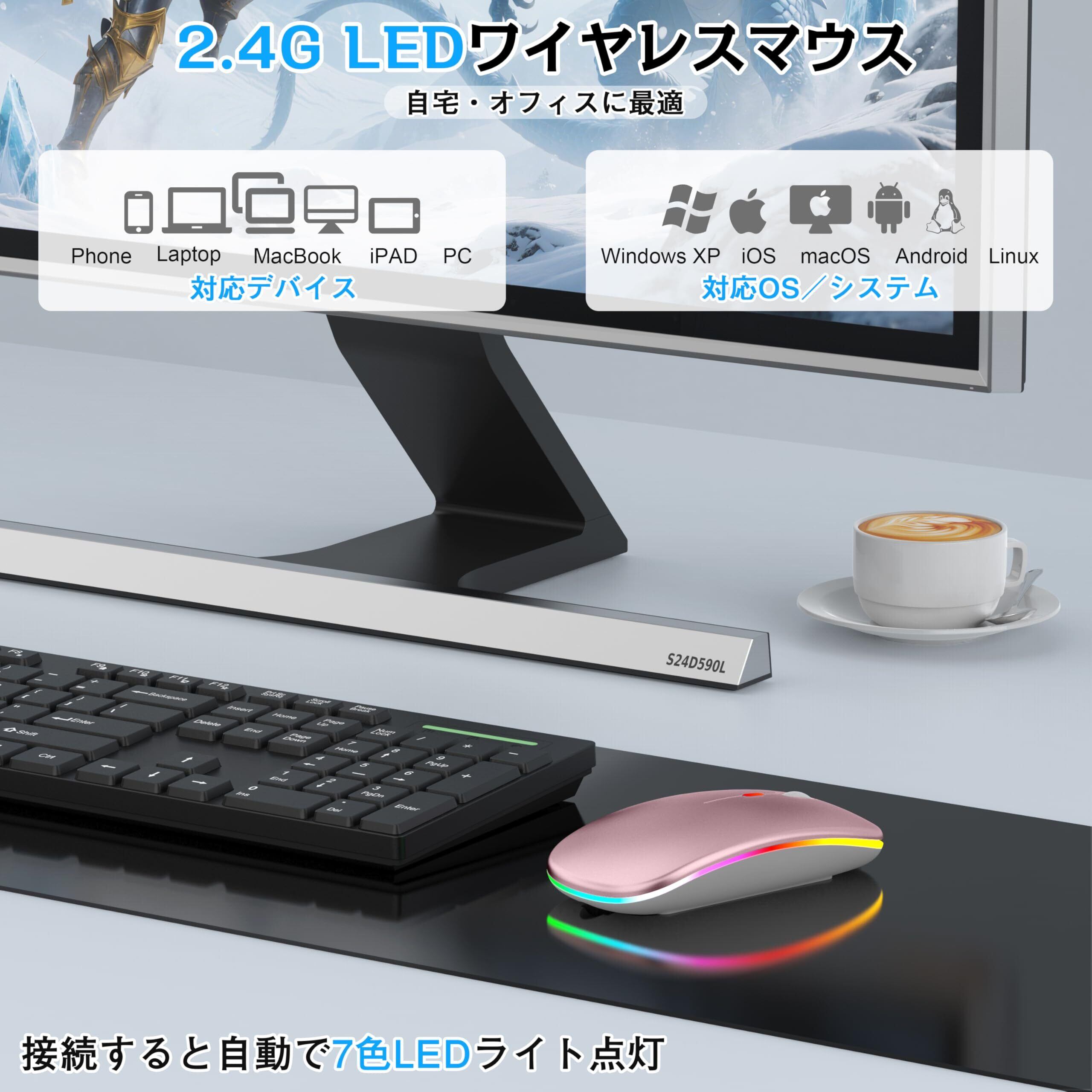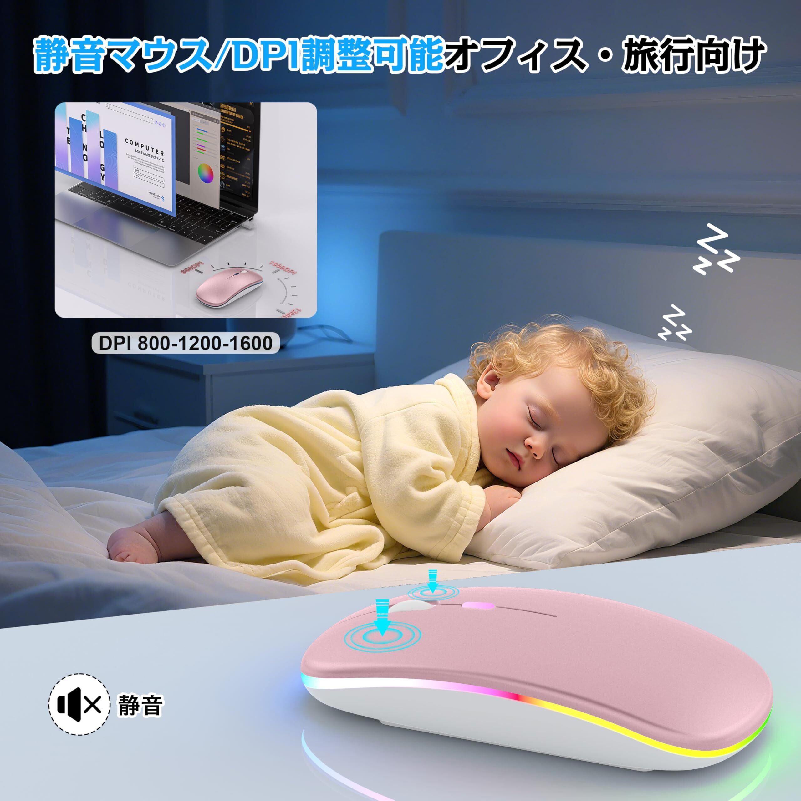 ワイヤレスマウス 2.4Gマウス 無線 Bluetooth &2.4GHz USB-A・USB-C対応 静音 光学式 薄型 Type-C充電 3段階DPI調整 ブルートゥース マウス 7色ライト ジグラーモード 持ち運び便利 MacBook/Mac/iPad/Laptop/PC/スマホ対応(ローズゴールド) | 毎日発送✿はなまる