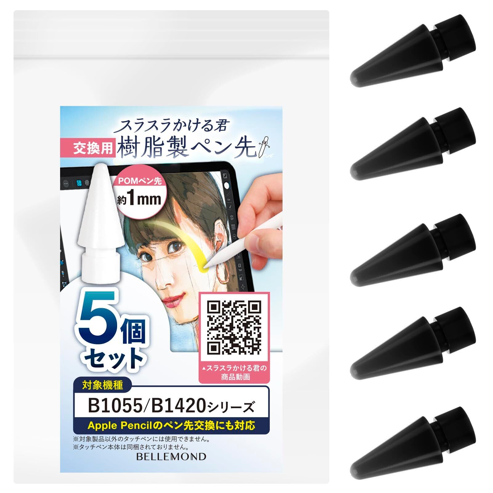 【セット内容】樹脂(POM)素材ペン先 × 5個【商品について】本商品は、ベルモンド「スラスラかける君」に付属する樹脂製ペン先の交換用です。Apple Pencil全世代に対応しており、アップルペンシル互換の樹脂(POM)素材ペン先・替え芯をお探しの方に。
