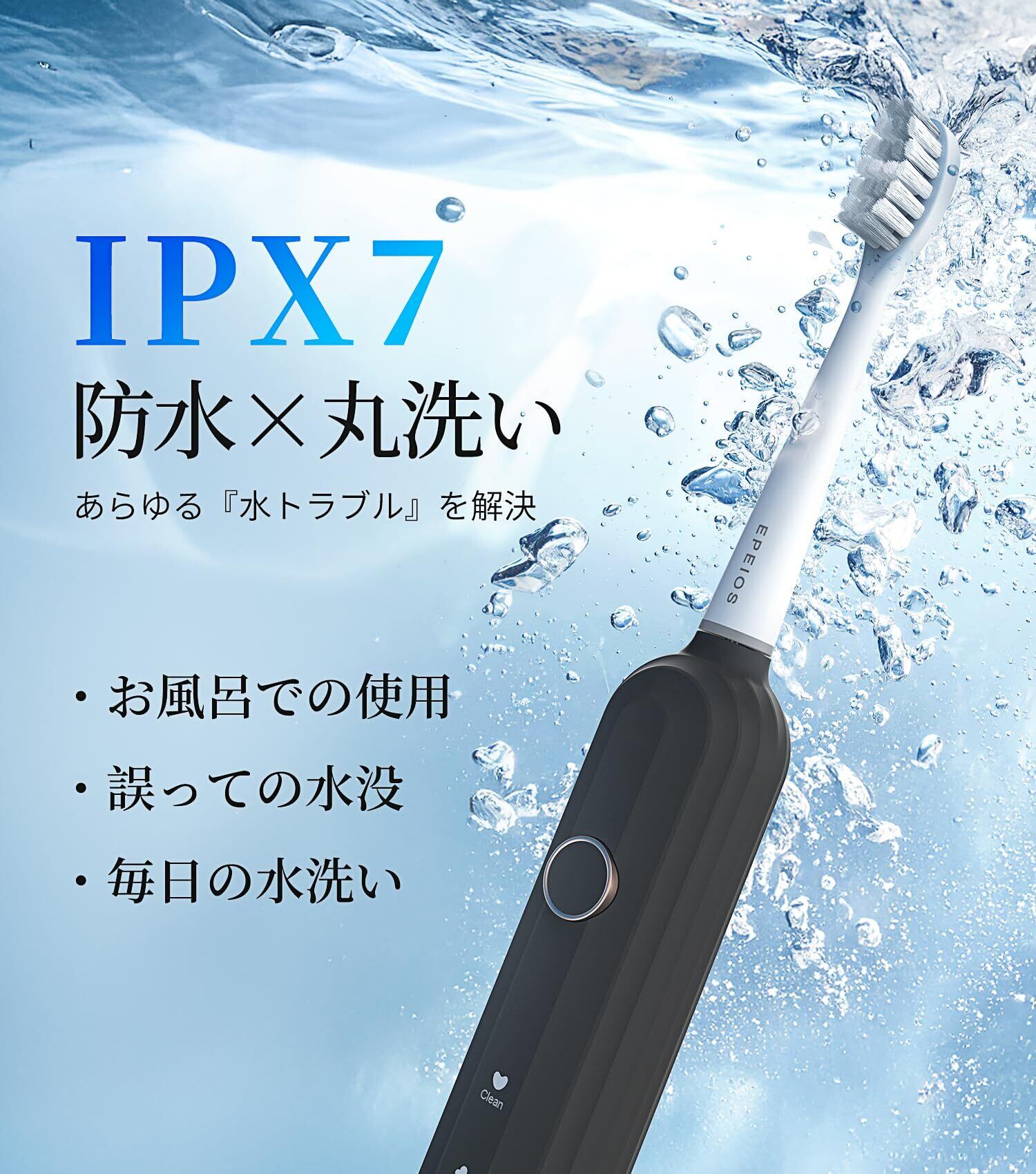 【抜群な高速音波技術採用 ・静音設計 ・IPX7防水】デュポン社製の極細毛ブラシを採用し、『ハイテク磁気浮上式モーター』を搭載し、高速音波振動と振幅でし歯垢をかき出して、歯間や歯ぐきの汚れをやさしく落とします。55dBの低ノイズ設計で、IPX7防水性能も持っており、シャワー中やお風呂でも安心してご使用可能な音波振動歯ブラシです。