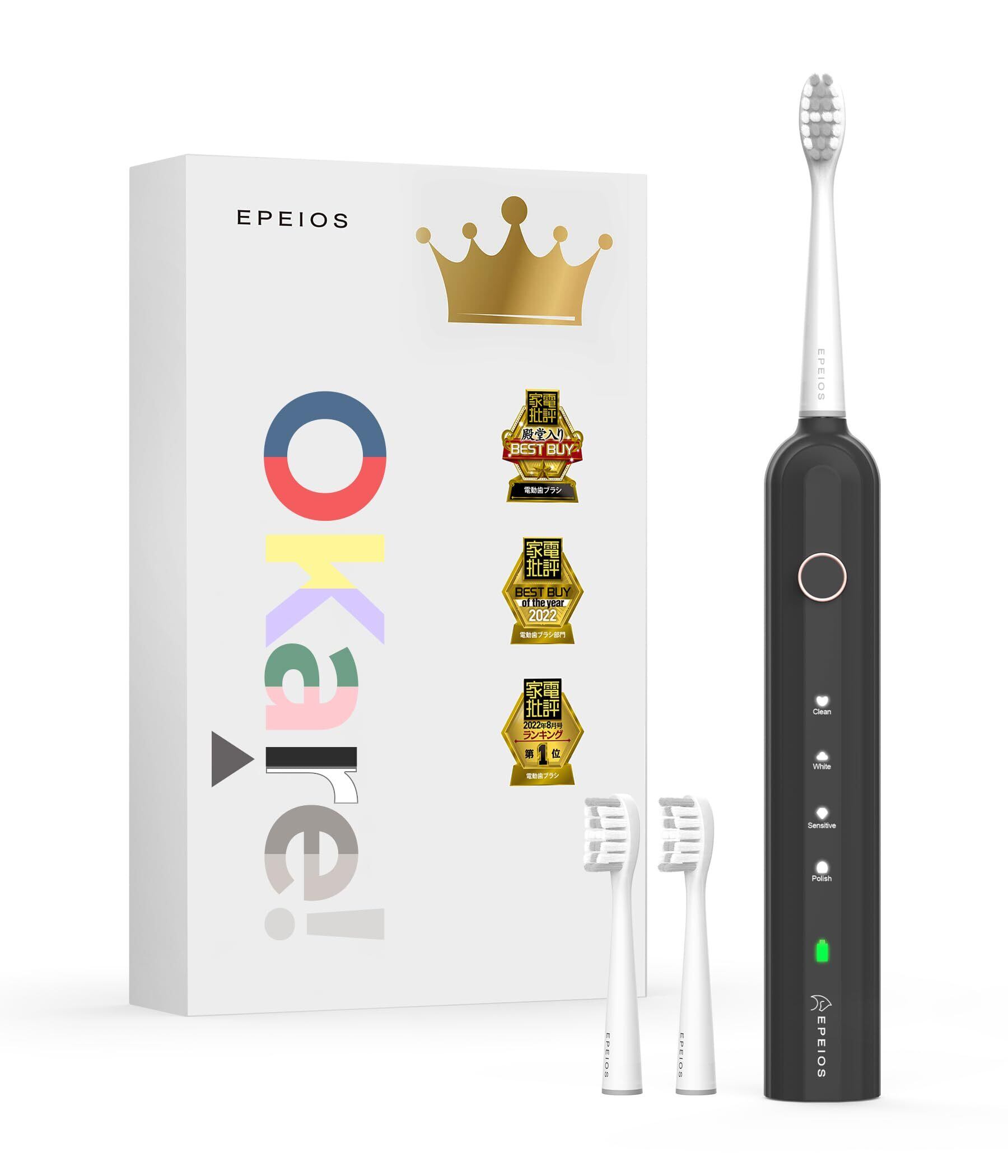 電動歯ブラシ エペイオス(Epeios) 音波歯ブラシ ソニック 歯ブラシ 電動 ブラシヘッド2本 IPX7 防水 歯磨き Type-C 充電式 180日間使用 OKare!ET003 誕生日 ギフト プレゼント