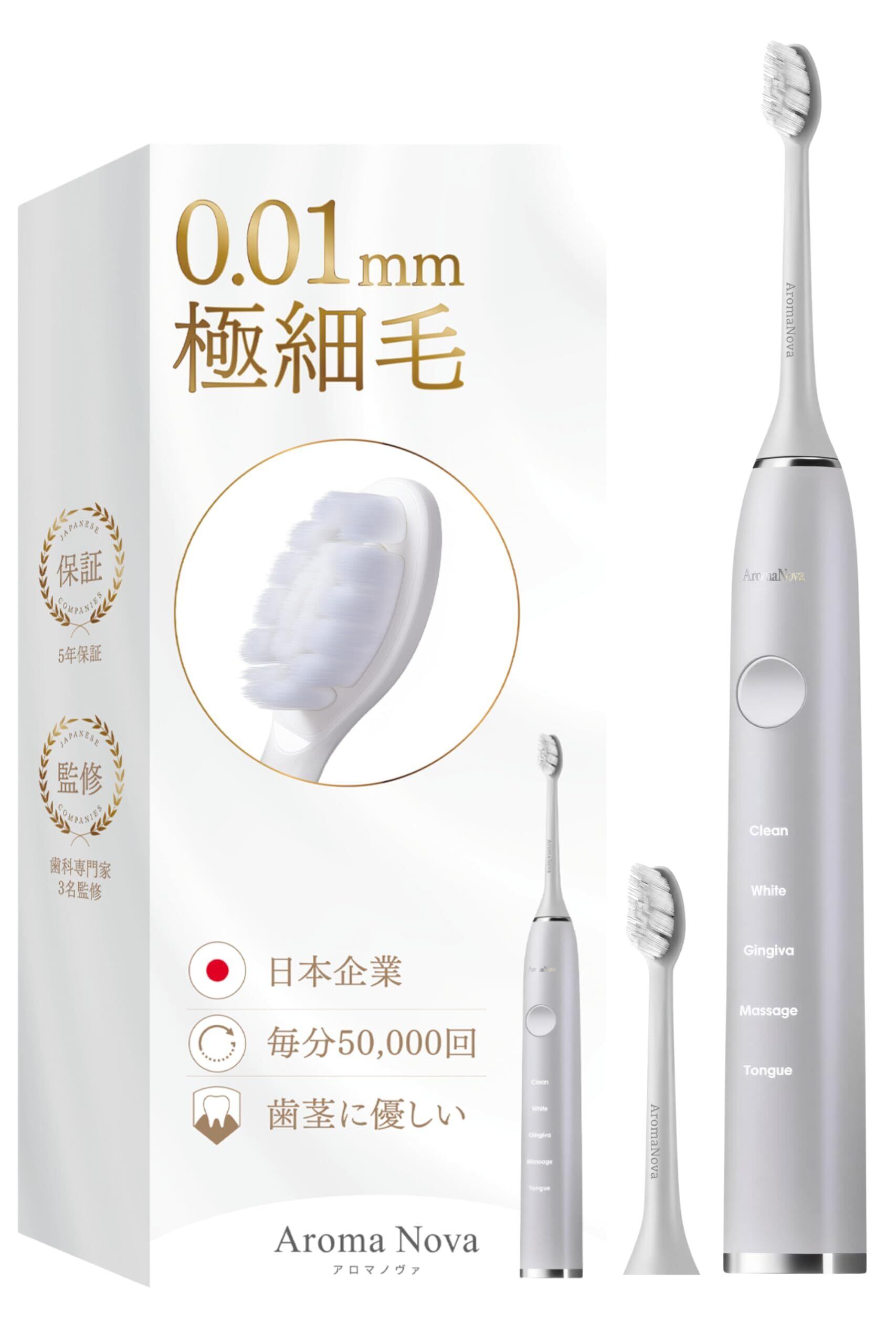 電動歯ブラシ 超高速歯ブラシ IPX7防水 アロマノヴァ ギフト プレゼント (プラチナホワイト)
