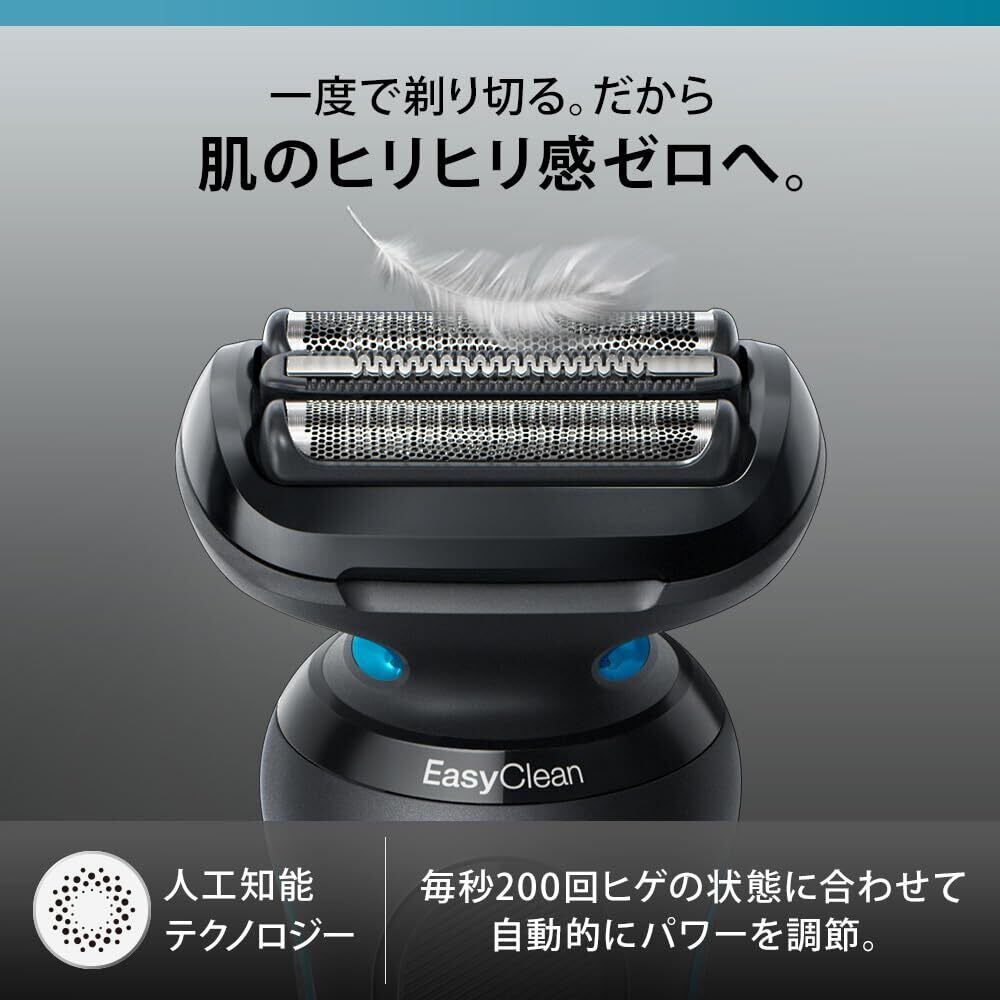ブラウン シリーズ5は3連密着ブレードを搭載したシェーバーで、肌の凹凸にシェーバーヘッドがしっかり密着した状態で髭剃りすることで、簡単に深剃りを実現。■3連密着ブレード:3つの刃がそれぞれ独立して浮き沈みすることで、肌にしっかり密着。■人工知能テクノロジー:髭の濃さを読み取り毎秒13回自動でパワーを調節し、ヒゲの濃い箇所でもパワーを落とさず最適なシェービングが可能に。■クイック洗浄システム:ヘッドを外さずに簡単に清潔洗浄■キワゾリトリマー:キワゾリトリマーアタッチメントにより、長い髭やもみあげも楽に髭剃り可能に。■100%防水設計:100%防水設計でお風呂剃り可能な電気シェーバー。シェービングフォームやシェービングジェルの使用も可能。■ディープキャッチ網刃:900パターンの網目をもったディープキャッチ網刃により様々な向きに生えるヒゲを根元からカット。■フル充電で約50分のコードレスシェービング 5分の急速充電で1回のシェービングが可能■3連密着ブレード:3つの刃がそれぞれ独立して浮き沈みすることで、肌にしっかり密着。