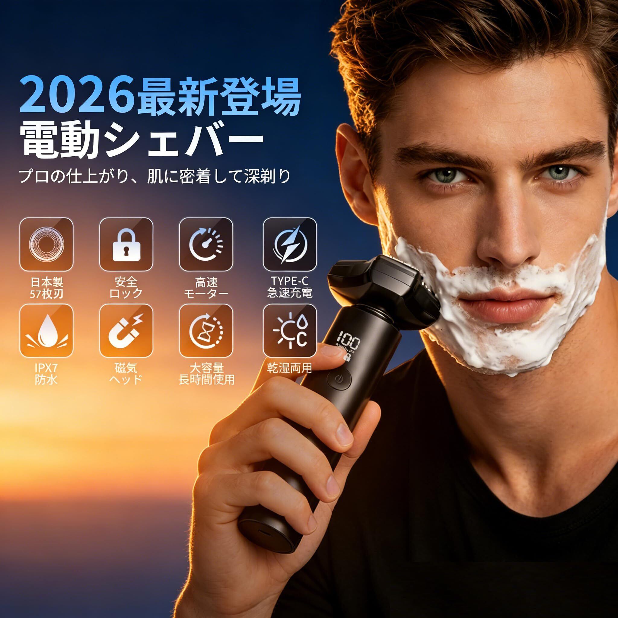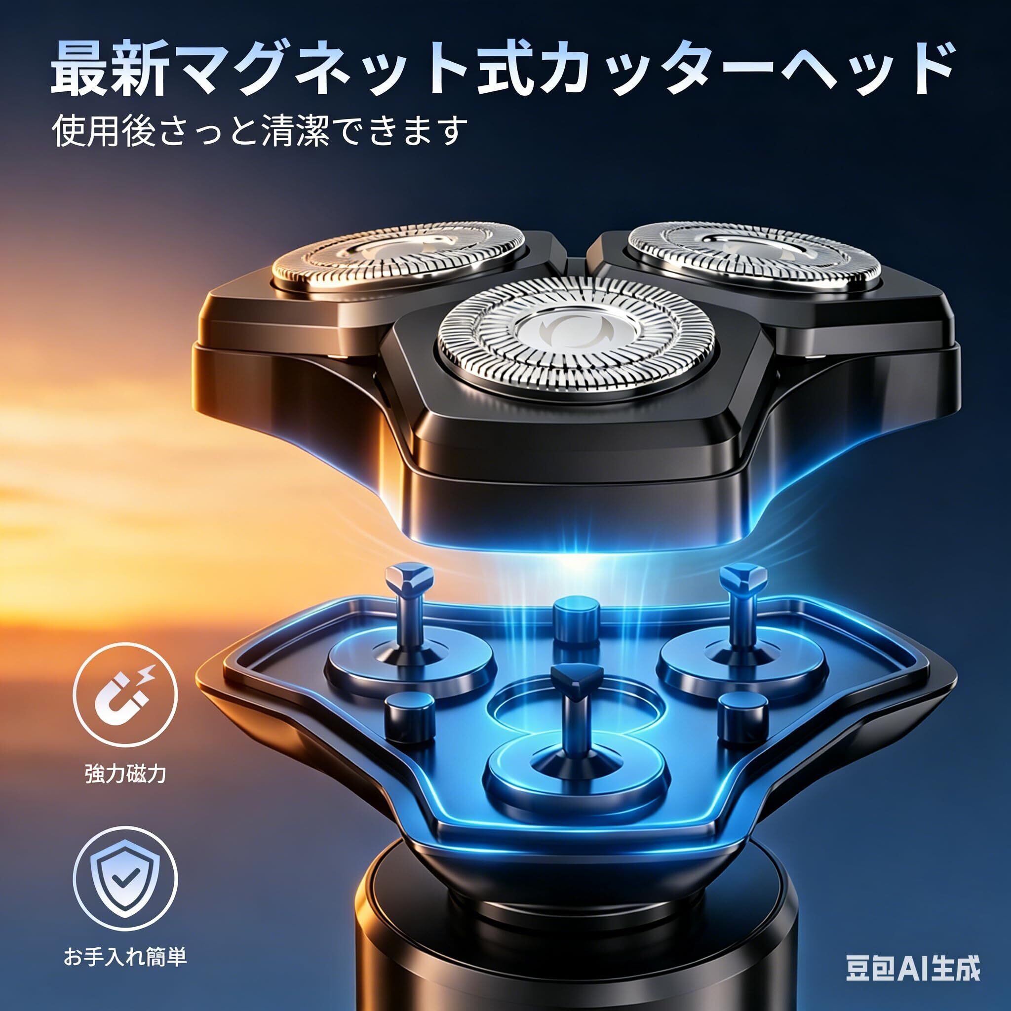【2026新登場進化系AIシェーバー&5Dフローティングブレード】わが社の電動ひげそりは 、独立フローティングヘッドを採用し、顔の輪郭の曲面や小さなうねり、首やあごに自動的にフィットし、肌への負担を軽減する。0.06mm極薄ステンレス刃が肌への負担を軽減し、安心して深剃りできます。この ひげそり 電動シェーバー は髭の濃さや長さをAIが自動検知し、最適なパワーで剃り残しを徹底カットできる シェーバー です。自動研磨システムが搭載され、使うたびに内刃が外刃と磨かれ、常にシャープな切れ味。