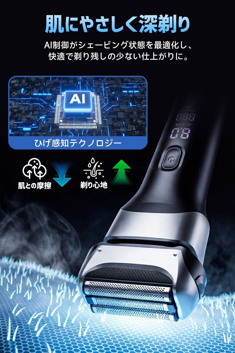 【3連密着ブレードでしっかり深剃り】2026年新登場の ひげそり 電動シェーバー は、 3連 密着ブレード 構造を採用。顔の凹凸やフェイスラインに自然にフィットし、 往復式 の カット 方式でヒゲを効率よくキャッチします。 深剃り 性能に優れながらも、刃が直接肌に触れにくい設計のため、 敏感肌 の方にも やさしい 剃り 心地を実現。毎日の 髭剃り 電動 として、剃り残しを減らしながら快適に使える シェーバー メンズ です。