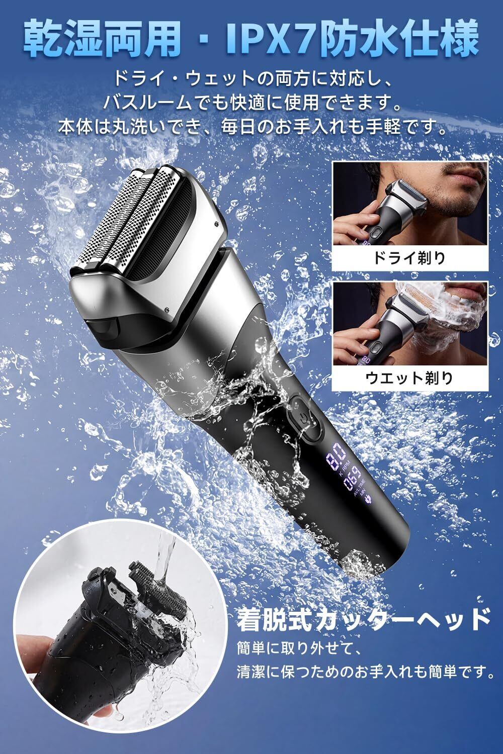 ひげそり 電動シェーバー 電気シェーバー 往復式 肌に優しい IPX7防水 水洗い可能 深剃り 低騒音 軽量 Type-c充電式 急速充電 メンズシェーバー 髭剃り トリマー付き 乾湿両用 ウェット&ドライ お風呂剃り可 LEDディスプレイ付き 高速回転モーター 電気カミソリ 男性 父の日 彼氏 プレゼント 旅行 出張 海外用