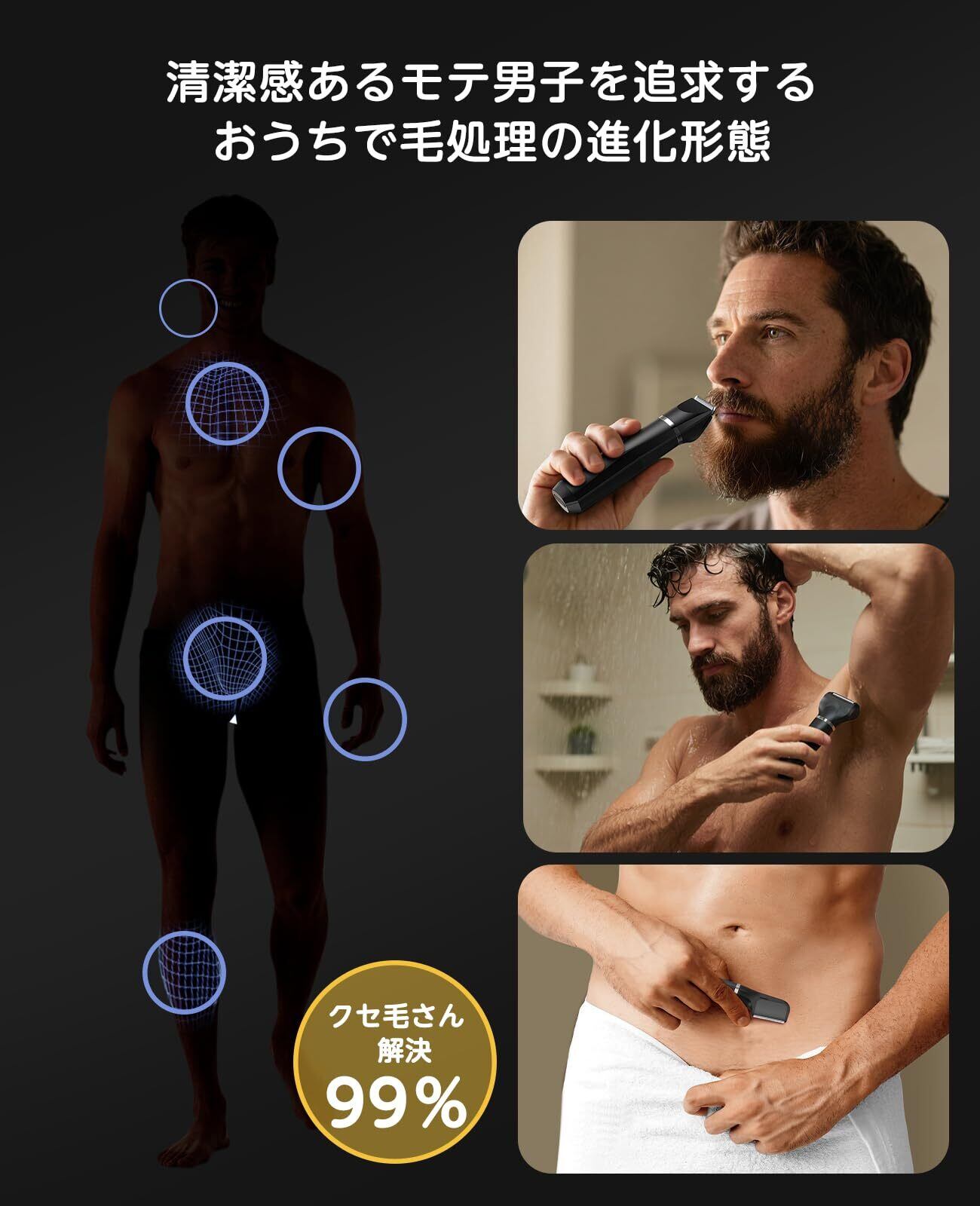 ボディシェーバーvio シェーバー メンズ IPX7防水 Type-c充電式 お風呂剃り 3in1むだげ処理 電動シェーバー デリケートゾーン すね毛 腕 腋毛 足 もみあげ 襟足 全身体毛 ツルツル 軽量 低騒音 日本語取扱説明書付き | 毎日発送✿はなまる