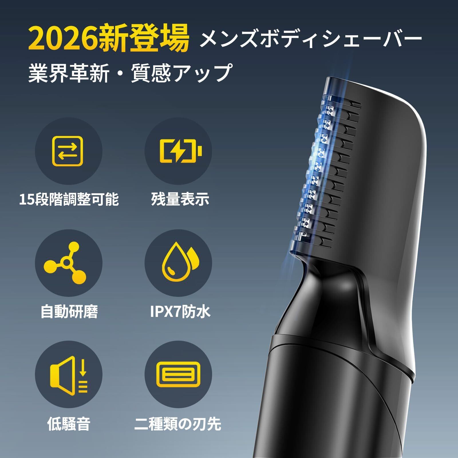 ボディシェーバー メンズ vio シェーバー 男性用 15段階調整可 1~17mm長さ対応可 自動研磨機能 全身カット可能 電気シェーバー IPX7防水 乾湿両用 お風呂中使用可 バッテリー表示&USB充電 低騒音 ボディトリマー ムダ毛処理 脇/腕/足/デリケートゾーン 全身適用 USB充電式 父の日贈り物 ブラック