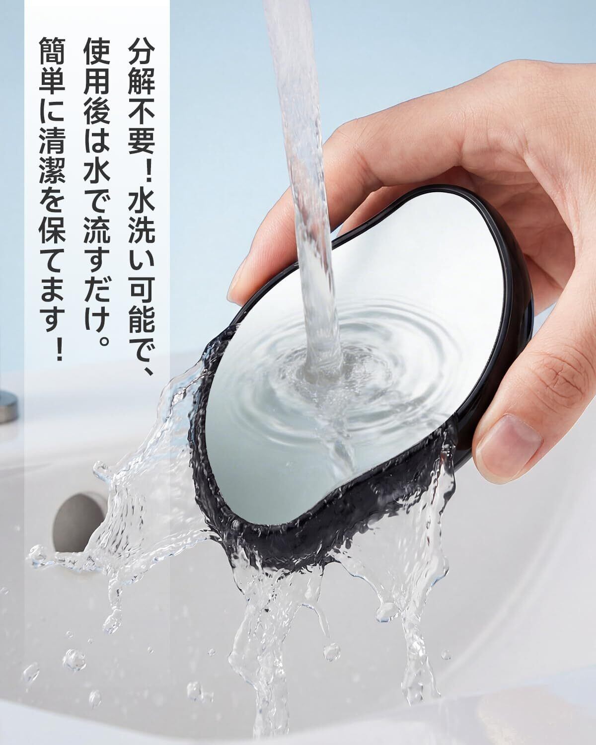 ✨【脱毛と角質ケアを同時に行う「Wスムース設計」】 製品表面の微細なナノ粒子構造は、ムダ毛を根元から取り除くだけでなく、古い角質をやさしくポリッシュする効果も備えています。市販の粗い研磨材とは異なり、肌への負担を最小限に抑えた滑らかな質感が特長です。太もも、ふくらはぎ、二の腕、お腹など、全身の気になる部位でお試しいただけます。わずか10秒ほどの軽いケアを続けることで、毛の目立たない、透明感のあるなめらかな素肌へと導きます。