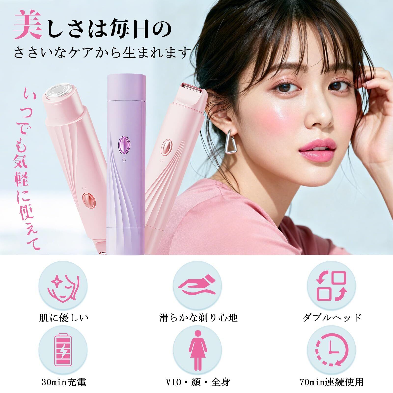 VIO シェーバー レディース 電気シェーバー 女性 電動カミソリ ボディシェーバ 全身用 ダブルヘッド USB充電 敏感肌対応 静音 軽量 携帯便利 (ピンク)