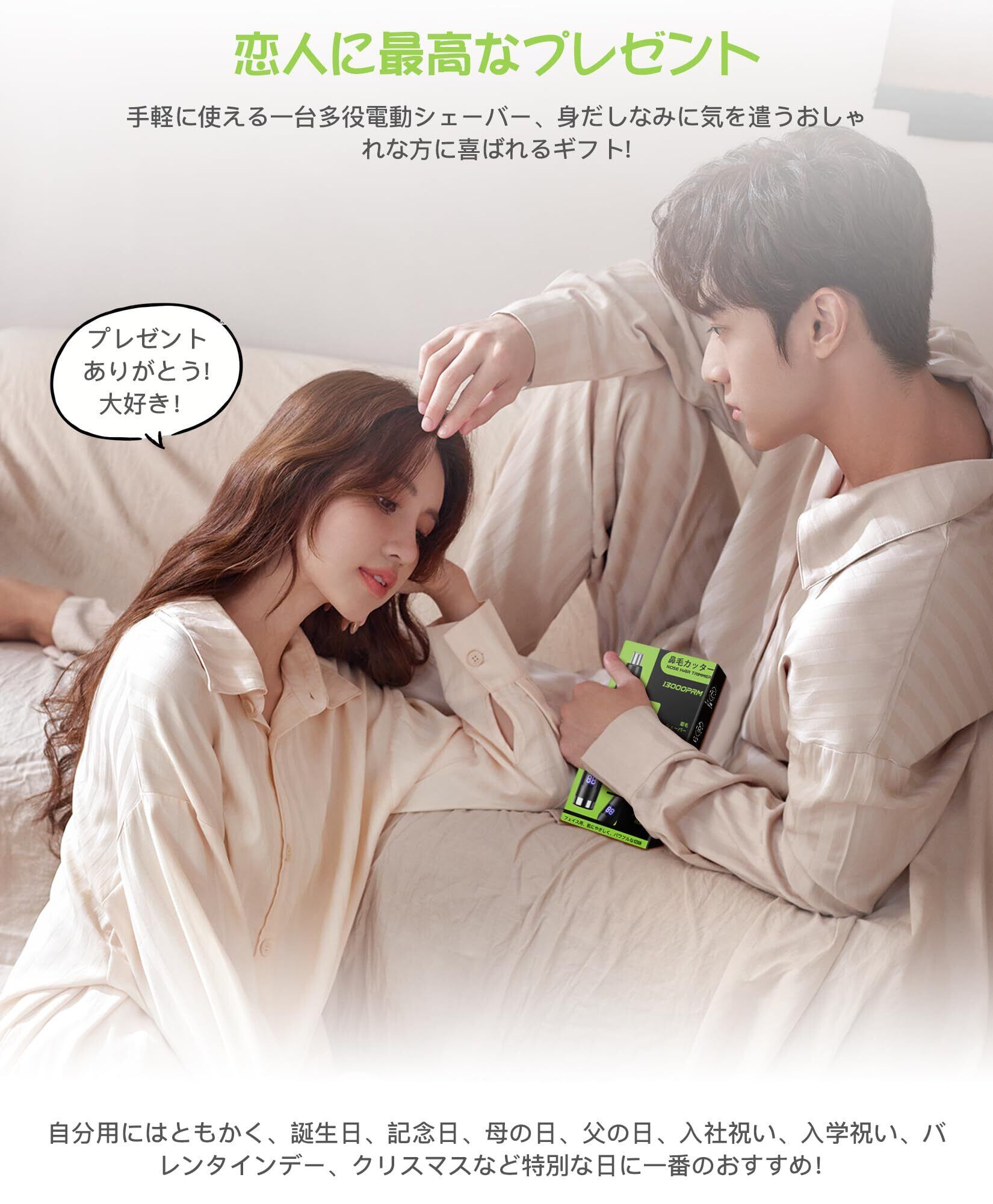 「ギフト最適・ナイスチョイス」この充電式鼻毛カッターは男女兼用、カラーはクラシックブラックを使って、傷のつきにくいメタルボディ技術を採用しております。手に取ると、まるで芸術品のような美しい、シンプルでスタイリッシュなハンサム鼻毛そりです。ですから、この耳げカッター メンズは夫、妻、恋人、兄弟、家族への贈り物として最適です。