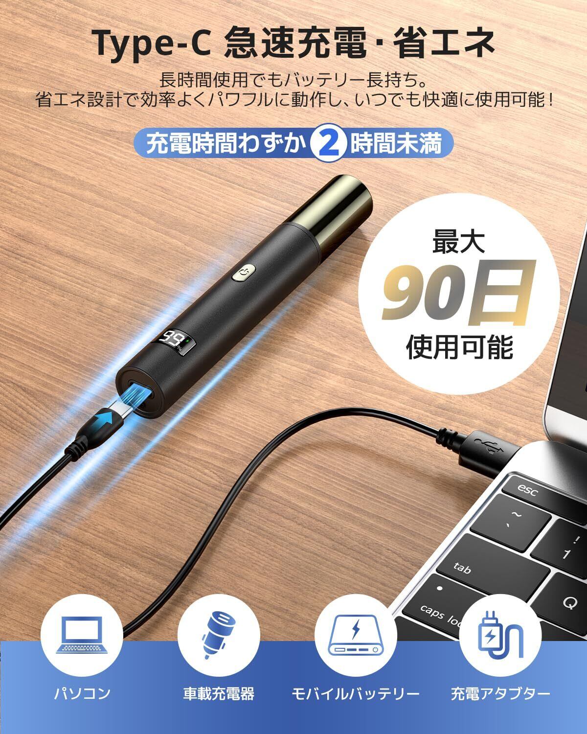 特徴 LCDディスプレイを搭載, SB充電, 急速充電, 水洗い可能, 着脱式ヘッド
