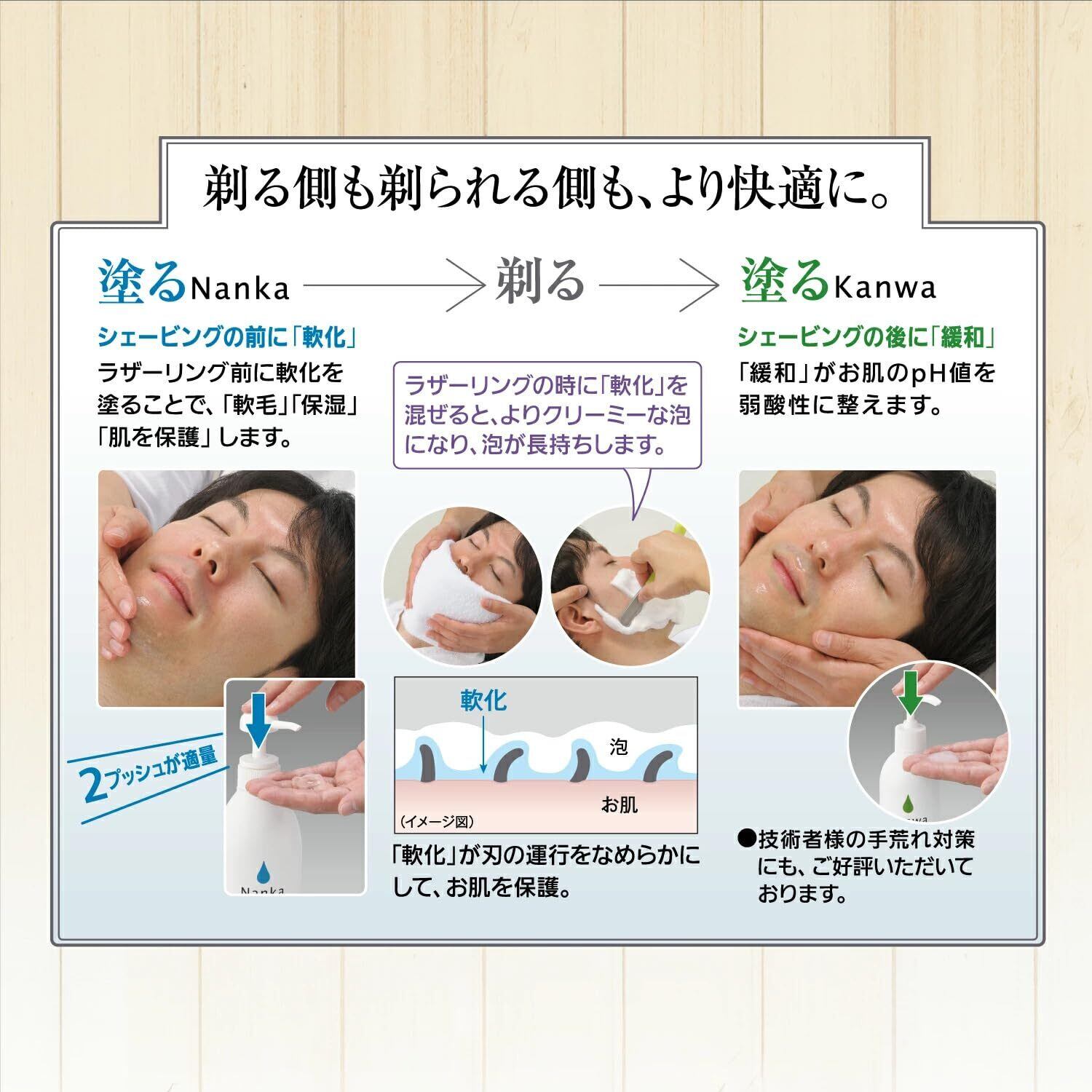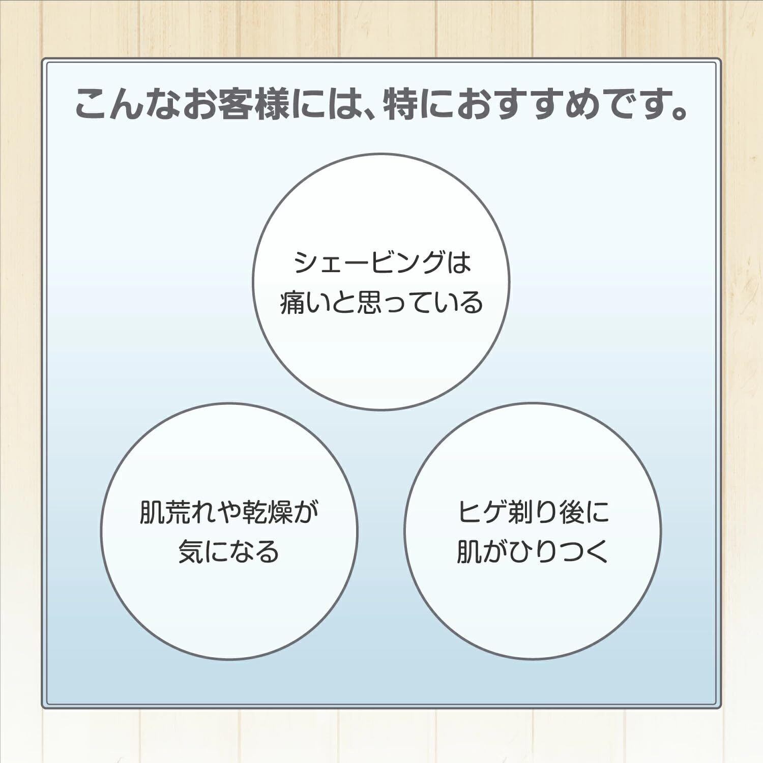 お肌に潤いを与え、みずみずしく保つヒアルロン酸、アミノ酸を配合、ひげや、うぶ毛の軟化を目的とした水溶性のプレシェーブジェルです。 かたくて濃いひげも軟化する効果があり、 滑らかなそり心地を提供します。 無着色、無香料です 添加剤ではなく、塗布してそのままシェービングできるジェルです。 適量を手に取りシェービング前にマッサージしながら肌に塗布してください。