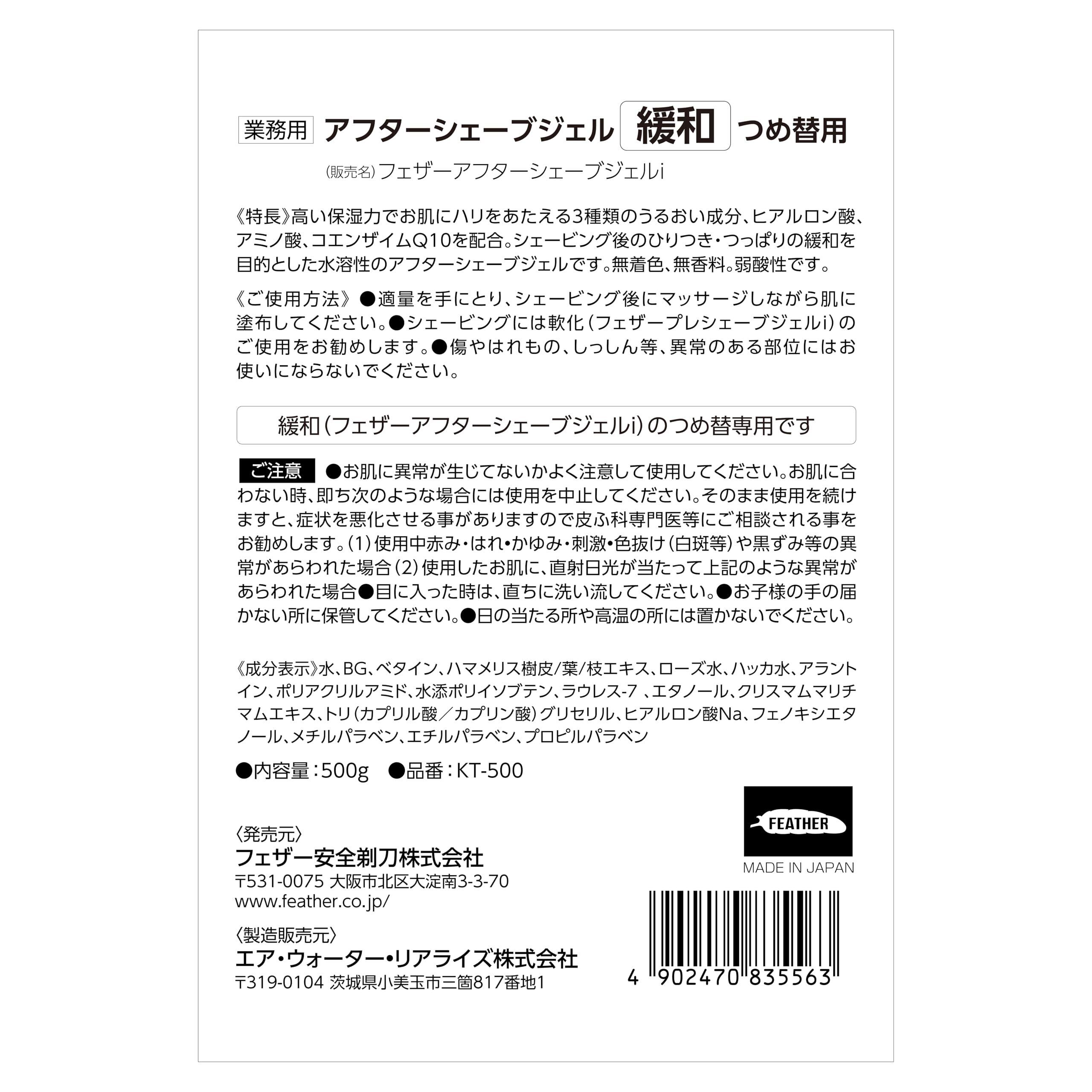 フェザーアフターシェーブジェル 緩和 500g つめ替え用