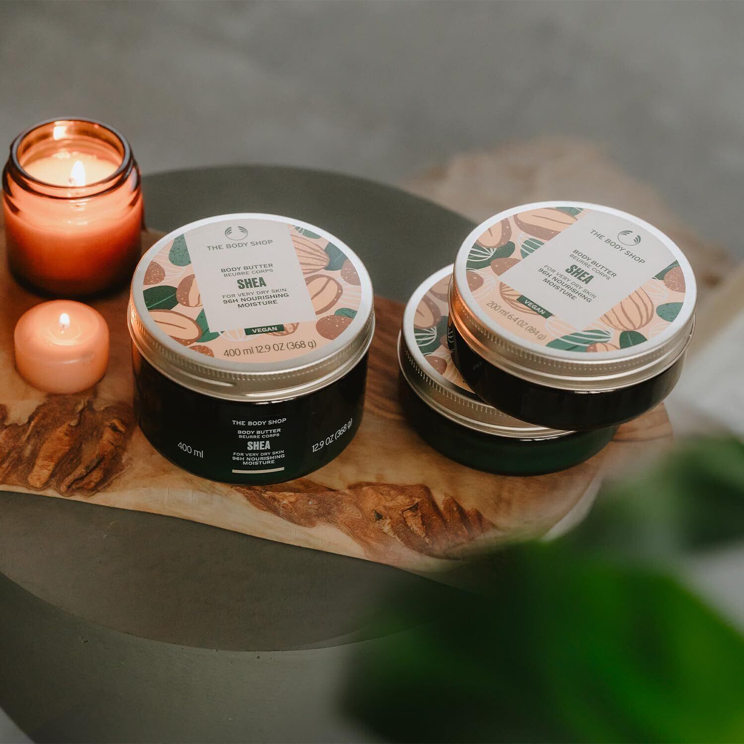 <ボディクリーム> 97%自然由来成分配合で、格別にリッチでこっくりとしたバターのように溶ける、うるおうのにべたつかないテクスチャーの、シアバター(保湿成分)を配合したボディクリーム。肌を深いうるおいで満たし、しっとりやわらかな肌に導きます。 ほのかに甘く優しいシアの香りで、心なごみおだやかな気分に包まれます。 保湿成分シアバター・ババスオイル配合で、乾燥して固くなった肌をうるおいで満たし、やわらかくなめらかな肌を長時間保ちます。 <テスクチャー・仕上がり> ・格別にリッチでこっくりしたバターのような、体温でとろけるテクスチャー:エクストラリッチバター ・あと肌うっとりする保湿感 <お肌のタイプ> ベリードライスキン 【シリーズ特徴】※ボディバター全種類に共通しております ー独自のバターテクスチャーで、長時間うるおいを感じる肌へー すべてのボディバターに、コミュニティフェアトレードの保湿成分シアバターを配合し、長時間うるおいをキープ。 ーヴィーガン認証ー ヴィーガン認証の代表的な存在であるヴィーガン協会から認証を受けた動物にも優しい商品です。 ーパッケージー 100%リサイクル可能な容器は、インドのプラスチックフォーチェンジ社のコミュニティフェアトレード再生プラスチックを使用。アルミの蓋も100%リサイクル可能となっており、よりサステナブルなパッケージに進化しました。