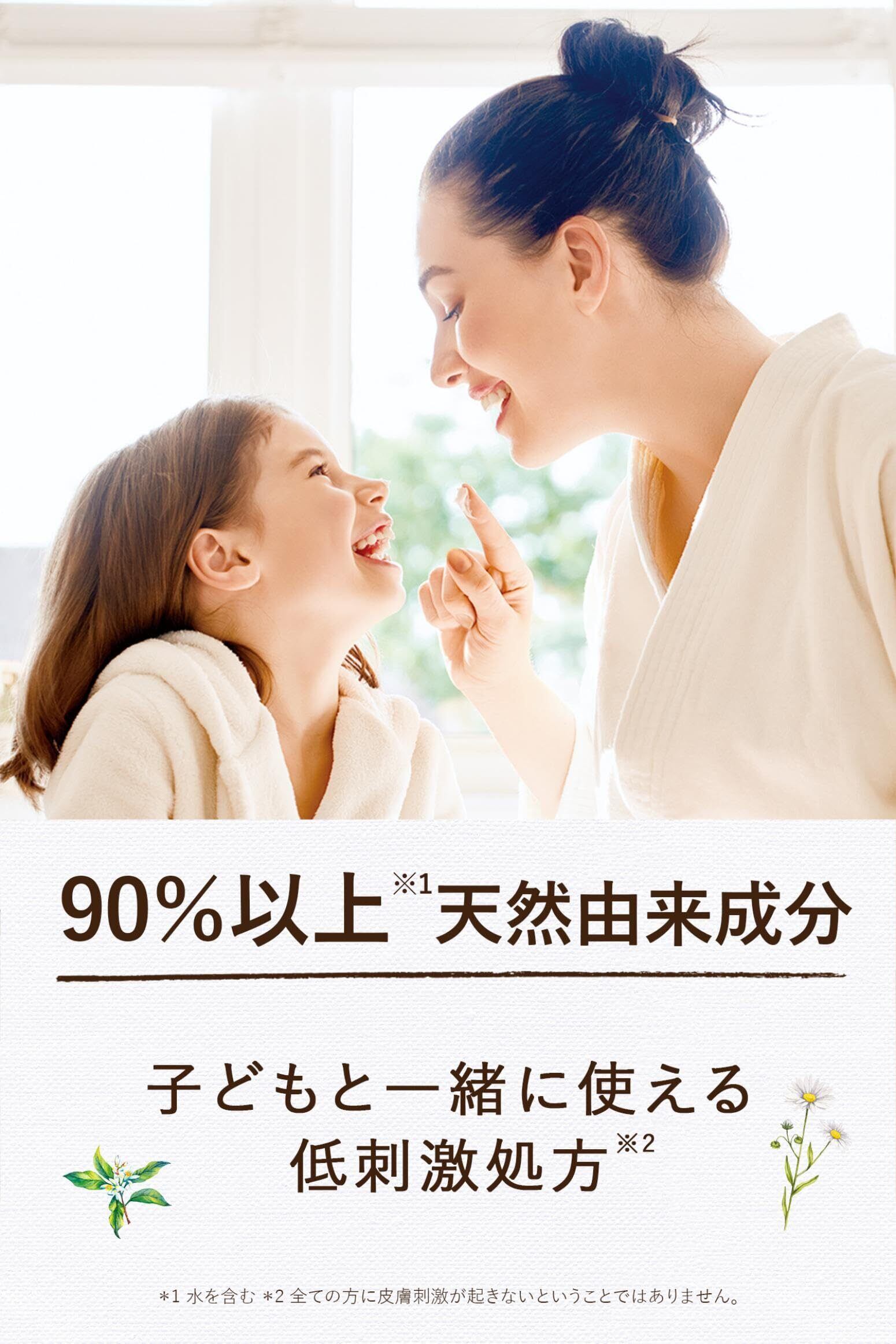 全身にさらっと浸透(*1)してしっかり潤いを与える、90%以上天然由来成分(水を含む)のボディミルク。植物から生まれたボタニカルセラミドや植物由来オイルを配合し、親子で使える優しさにこだわりました。たっぷり使える大容量タイプ。