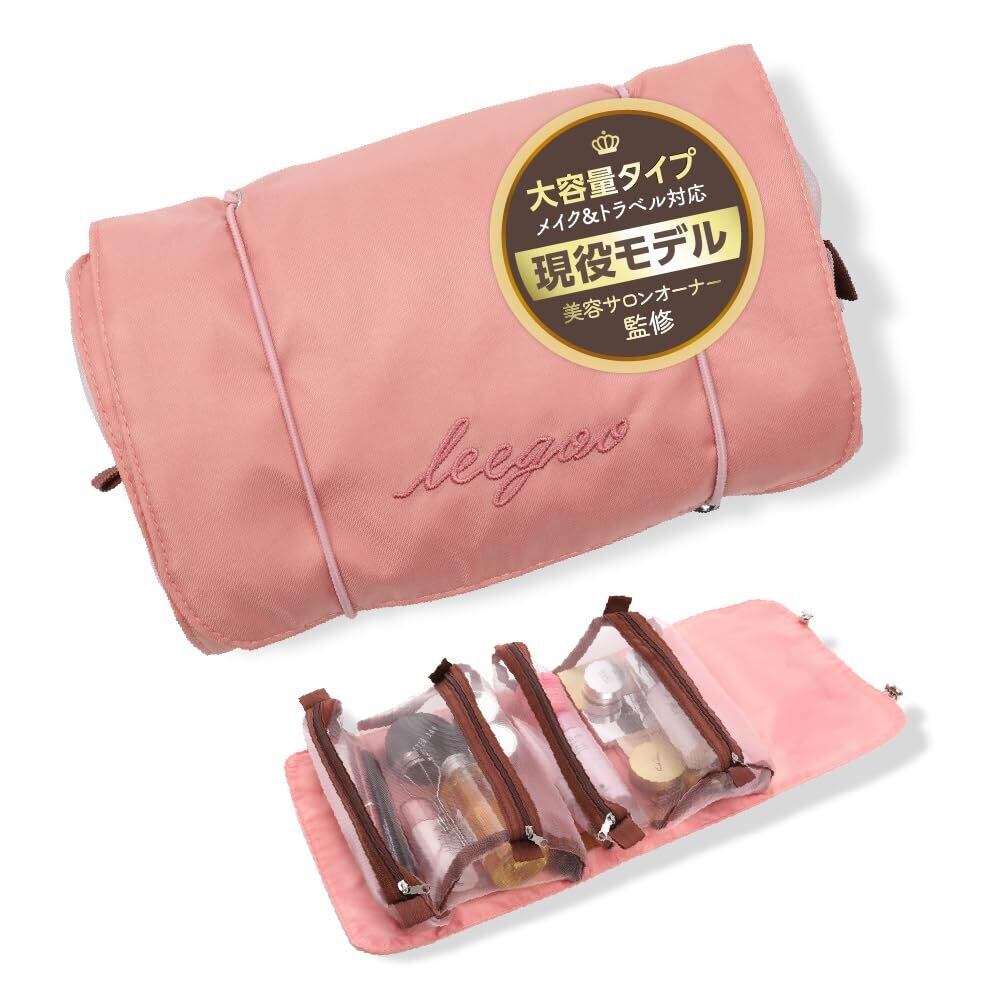 メイクポーチ トラベルポーチ 化粧ポーチ コスメポーチ 大容量 便利グッズ 旅行 防水 折りたたみ 吊り下げ 化粧品バッグ 収納バッグ (ピンク)