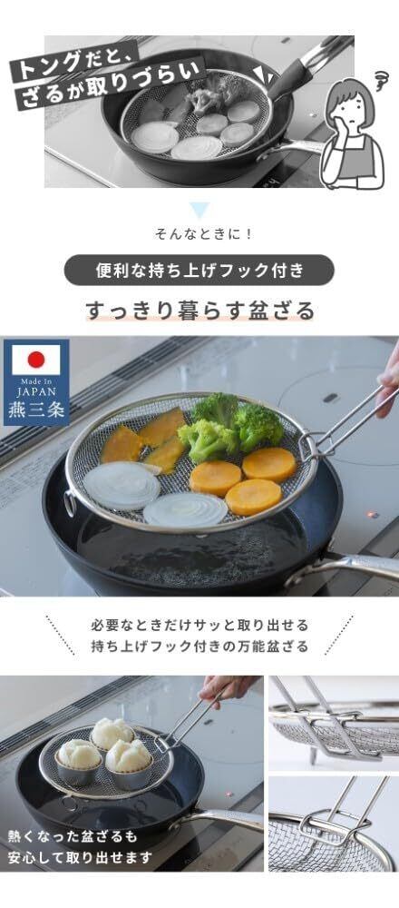 すっきり暮らす 盆ざる 19・22cmセット 日本製 ステンレス 食洗機対応 脚付き 専用フック付き 24cm~26cm以上のフライパンに対応 吊り下げ収納 蒸しざる 水切り 省スペース コンパクト 燕三条 LW-930009S | 毎日発送✿はなまる