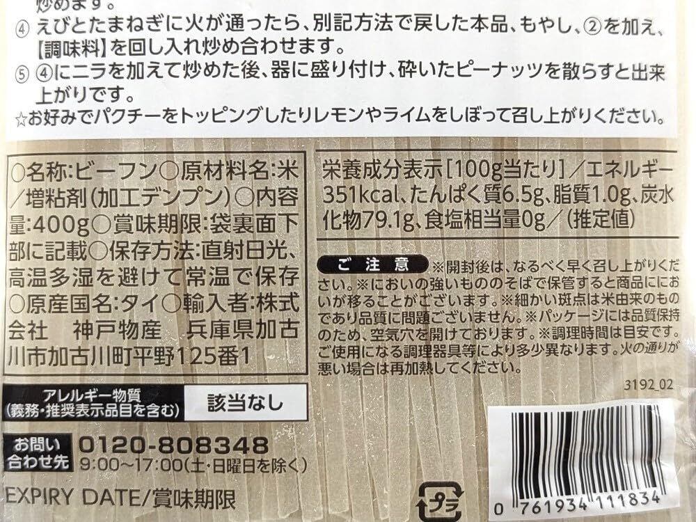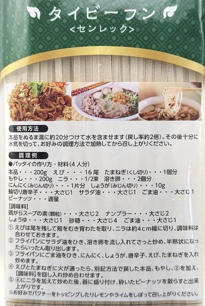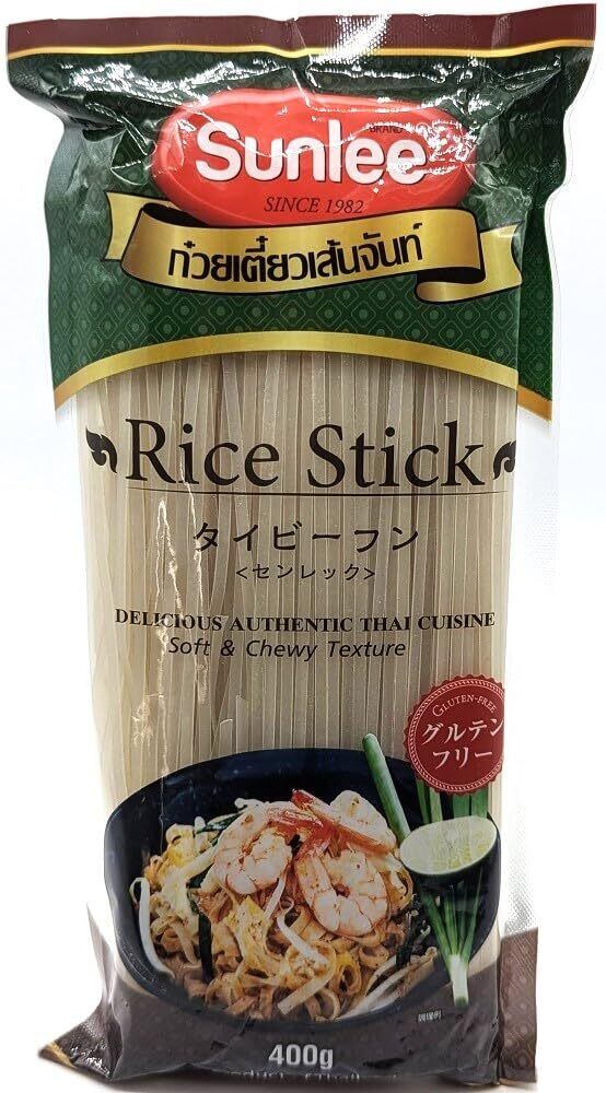 タイ料理の定番パッタイ(タイ風焼きそば)に最適なタイビーフンです。ぬるま湯にしばらく浸けて戻し、お好みの材料と合わせて炒めるだけで簡単に本場の味をお楽しみいただけます。グルテンフリーなのもうれしいポイント!