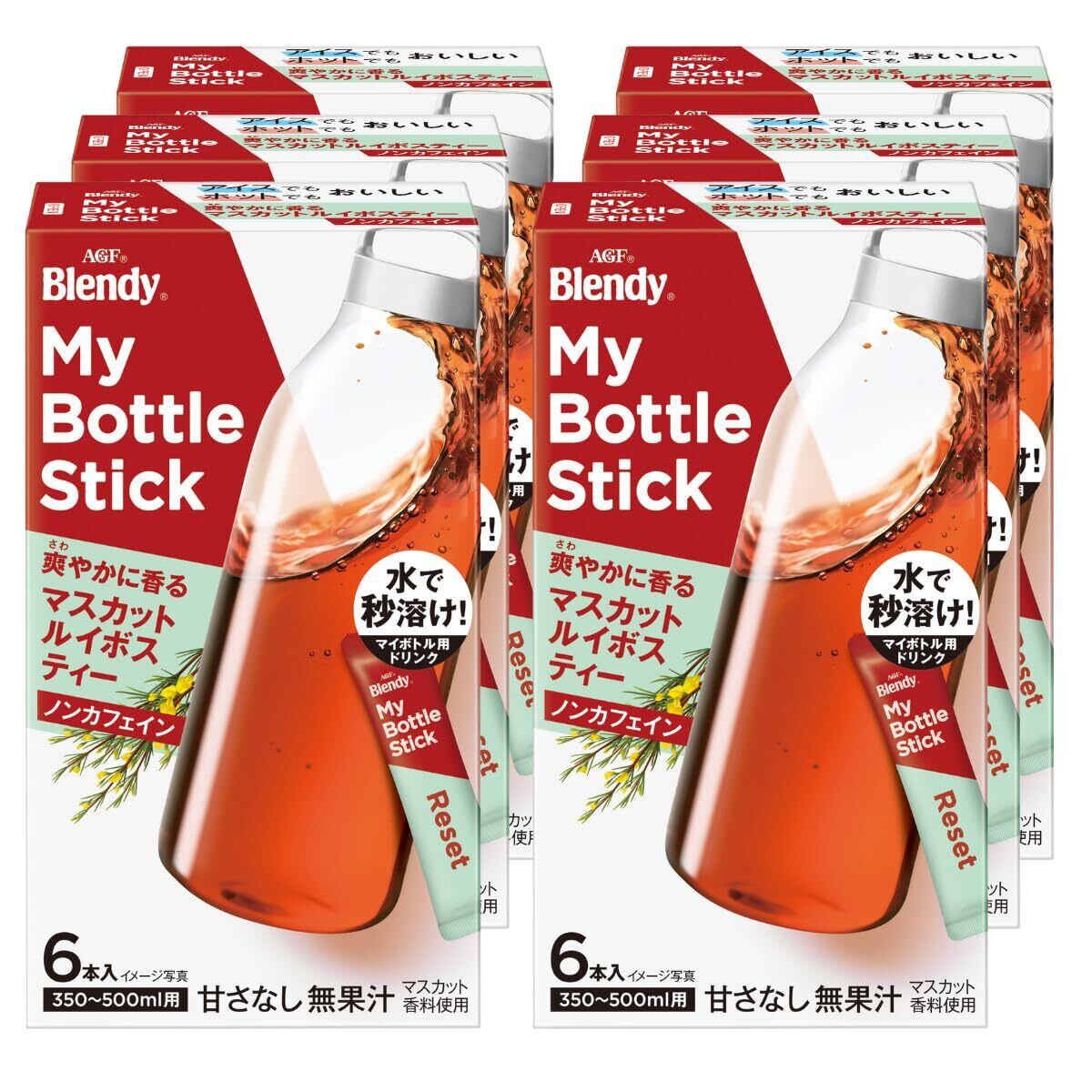 AGF(エージーエフ)「ブレンディ」マイボトルスティック 爽やかに香るマスカットルイボスティー6本は、マイボトルに最適なレシピでホットもアイスも楽しめるノンカフェインの無糖マスカットルイボスティーです。